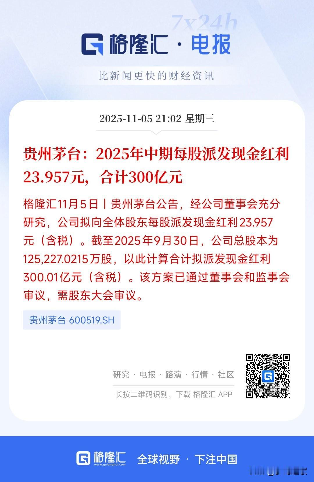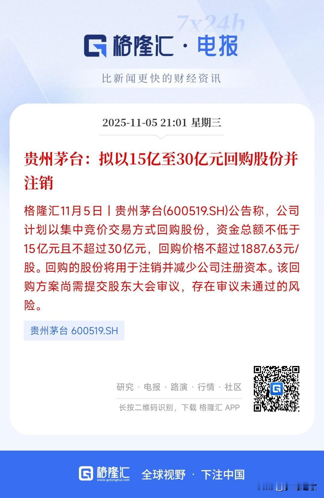 茅台连发两个大招,拯救白酒板块势在必行 今年白酒板块已经跌了8.06%,妥妥的最难板块,科技股整体已经涨了47.92%,指数已经进入了牛市,但是白酒还在跌,可见今年白酒有多难。而飞天茅台的降价是主要原因,茅台今年跌了5.10%,如果今年在跌就是呈下跌趋势连续5年了。 昨晚茅台发布公布1.分红300亿,2.30-50亿元回购公司股份,虽然回购的资金不多,但是分红确实实打实的,对于茅台的股价会得到刺激,就看今天白酒买不买账了。 对于现在市盈率只有19.75的茅台来说,现在的股价确实不贵了。