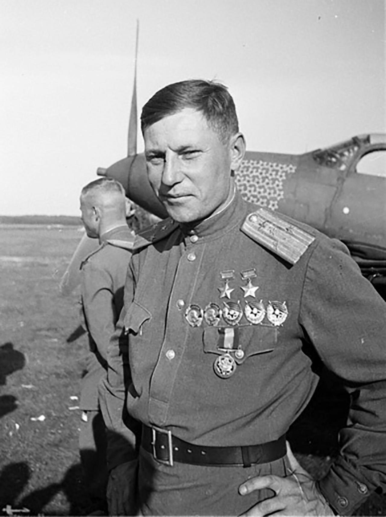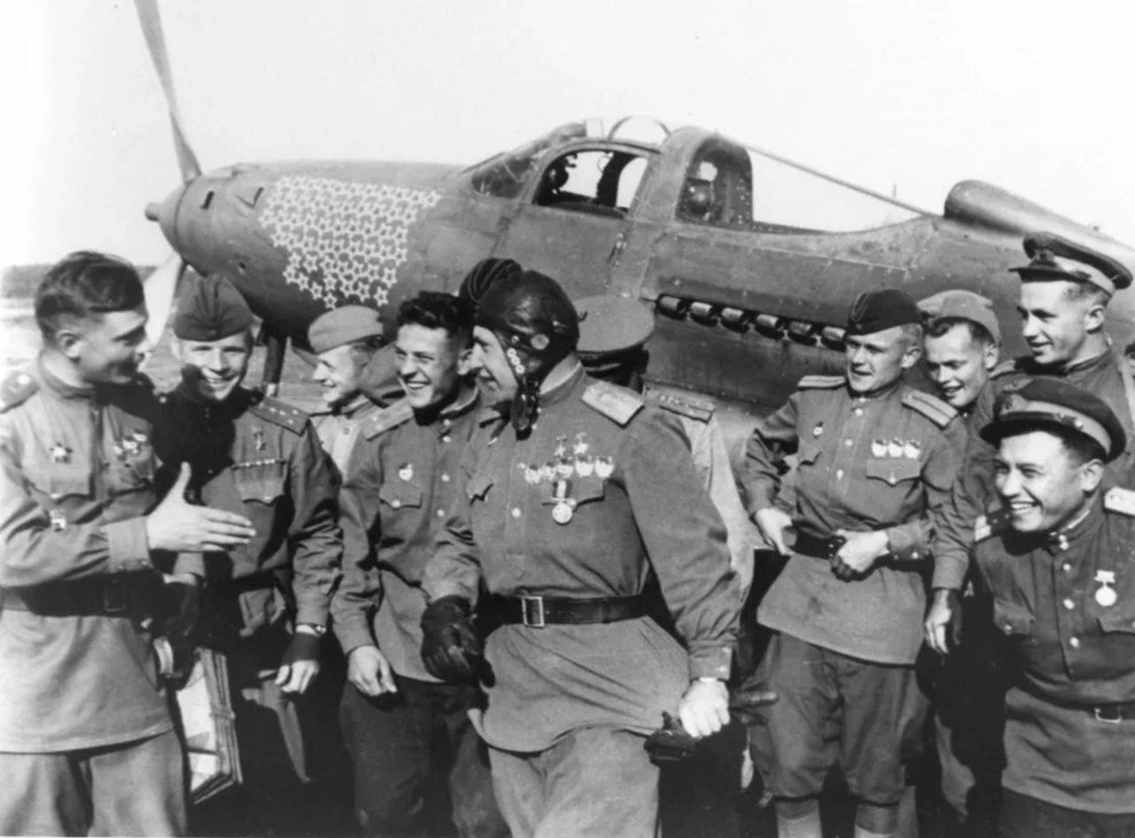 1945年,美国,蒙大拿州,大瀑布城空军基地内,一架涂装苏联空军标志的P-63“眼镜王蛇”战斗机正在进行最后调试。二战期间,通过大瀑布城基地中转,共有8000架各型飞机通过租借法案交付苏联。 大瀑布城基地是美国蒙大拿州战略空运枢纽,1942-1945年间承担阿拉斯加-西伯利亚航线的飞机移交任务,苏军飞行员在此接收后直接转场苏联。 P-63“眼镜王蛇”战斗机是贝尔公司研发的P-39改进型战斗机,配备37毫米机炮与4挺12.7毫米机枪,苏联空军获得2400架,主要用于对地攻击任务 美国空军非常不喜欢P-39和之后的改进型P-63,认为性能差,难以操纵,难以维护,飞行员还编了顺口溜和俚曲来吐槽。所以当作援助物资一股脑给了苏联。没想到毛子倒是挺喜欢这种飞机,认为机体坚固,火力凶猛。3次“苏联英雄”称号获得者、王牌飞行员亚历山大·波克雷什金就驾驶P-39取得了惊人的战绩(参见图5~6)。 [呲牙] 果然,学霸是不挑文具的。