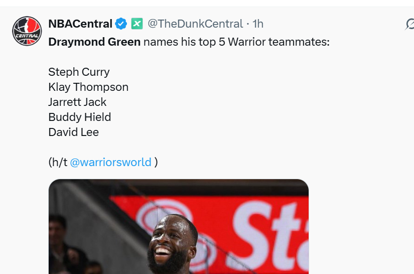 库里,汤普森,贾勒特杰克?希尔德和大卫李!追梦评最佳队友无伊戈达拉