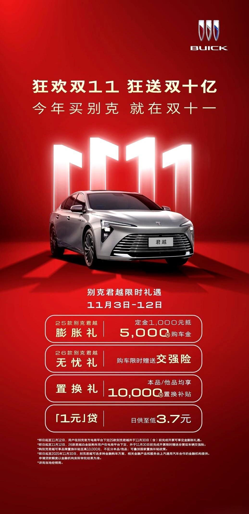 我掰着指头算了算,别克这波双十一,是真打算让你揣着小三万块钱出门。 不是跟你玩虚的,不是送你一堆没用的脚垫、贴膜。是实打实的钱。 说白了,就三步。 第一步,你先扔1000块定金,它直接当5000花。等于白送你4000。 第二步,你要是换车,不管你现在开的啥“功勋卓著”的老伙计,昂科威Plus和君越直接给你1万的置换补贴。你别管什么本品他品,给钱就完事儿。 第三步,也是最狠的,国家的补贴还能叠加上,最高1万5。 你算算,4000 + 10000 + 15000,这是多少?就问你香不香。 年底想给家里换个大车的,昂科威Plus真的可以去看看。那空间,那座椅,坐进去就是GL8那个味儿,二胎家庭的福音。别克是把“舒服”这两个字玩明白了。 想换个轿车,让自己体面点,君越的气场还没输过谁吧?开出去谈事、接人都妥妥的。 当然,便宜不是天天有。 就10天,11月3号到12号。 过了这村就没这店了,别回头拍大腿说我没提醒你。剩下的自己去4S店问,把优惠算明白,别让销售把你绕进去。