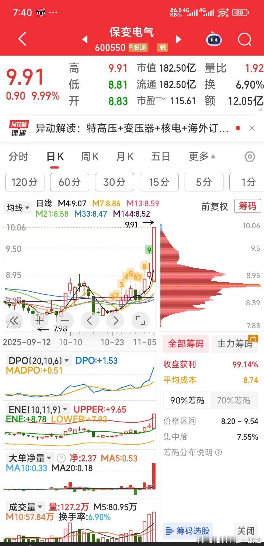 四只候选股全涨停,以后不可提前预告了:摩恩电气,保变电气,闽东电力,太阳电缆:四