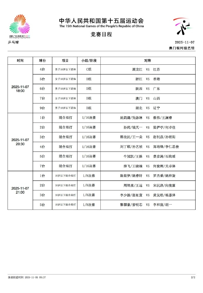 全运会乒乓球男团分组全运会乒乓球男团上海北京同组第十五届全运会乒乓球项目将于11