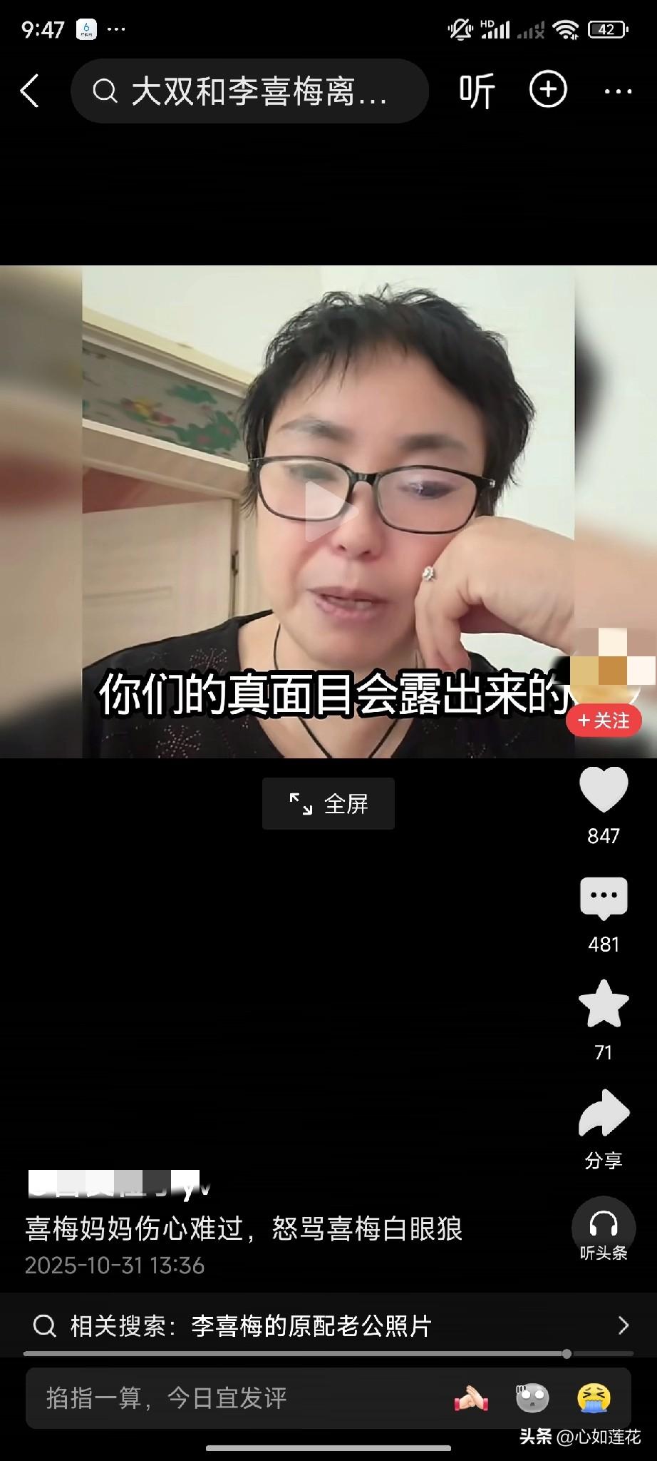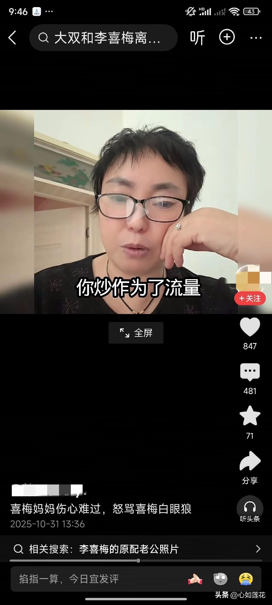我信李喜梅妈妈的话,如果不是因为她的不孝,她的父母是不会说出真相的,因为她残疾,没有一个父母能这样做。 事实上最近平台流量最大的就是残疾人,比如:梦秋傻到除了吃,连卫生巾都需要宁宁帮她换,但就是因为大众的同情心,因她而带红了亮哥和她的姑姐,不算视频流量,带货估计没有上亿,也有几千万了吧?四个家庭分,梦秋也是妥妥的千万富婆,大众都是老百姓,你们同情她,那些人可劲演好人,剧情一个接一个,梦秋和宁宁的生活依然还是在脏乱差里,妙妙还是上不学,更不会有干预。 那个泥娃,除了智力比梦秋好,但身体残疾,加上智力也有点问题,她的耍泼打滚,也给树兰和老表都赚得盆满钵满。 言归正传,李喜梅造势制造剧情骗流量也不是不可能,有没有发现,很多网红都是在演戏树人设,赚得盆满钵满时,人设崩塌,然后就退出网红的舞台。 我发现大众的同情都没有了底线,被那些原本弱势群体利用大家的善良和包容。