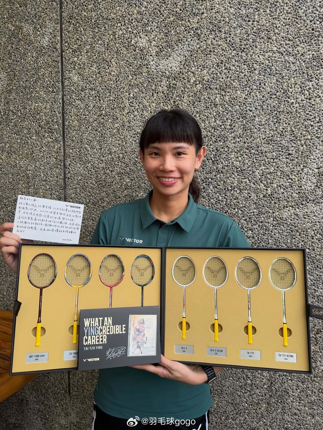 戴资颖展示历代战拍迷你收藏礼盒,精致复刻经典战拍我爱羽球