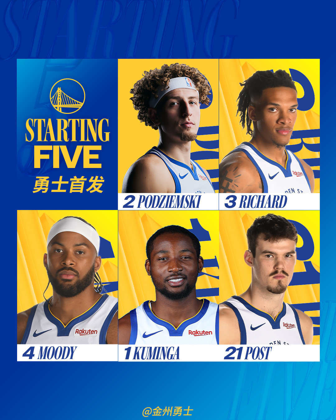 勇士今日首发: