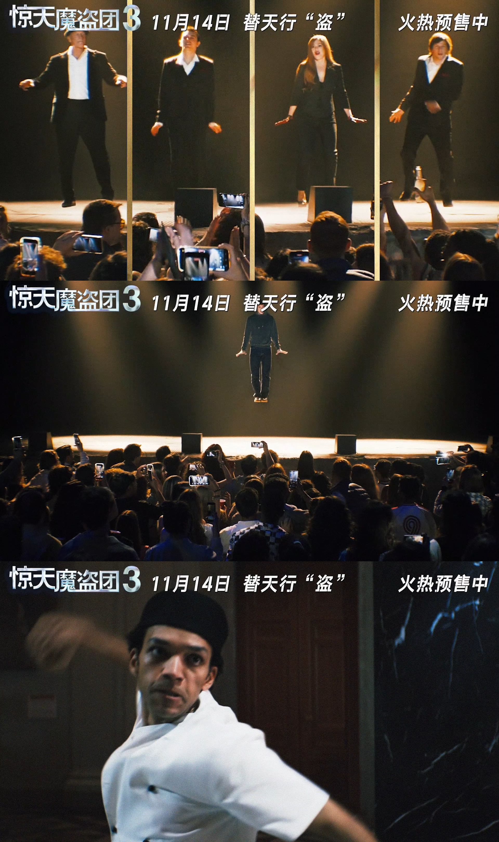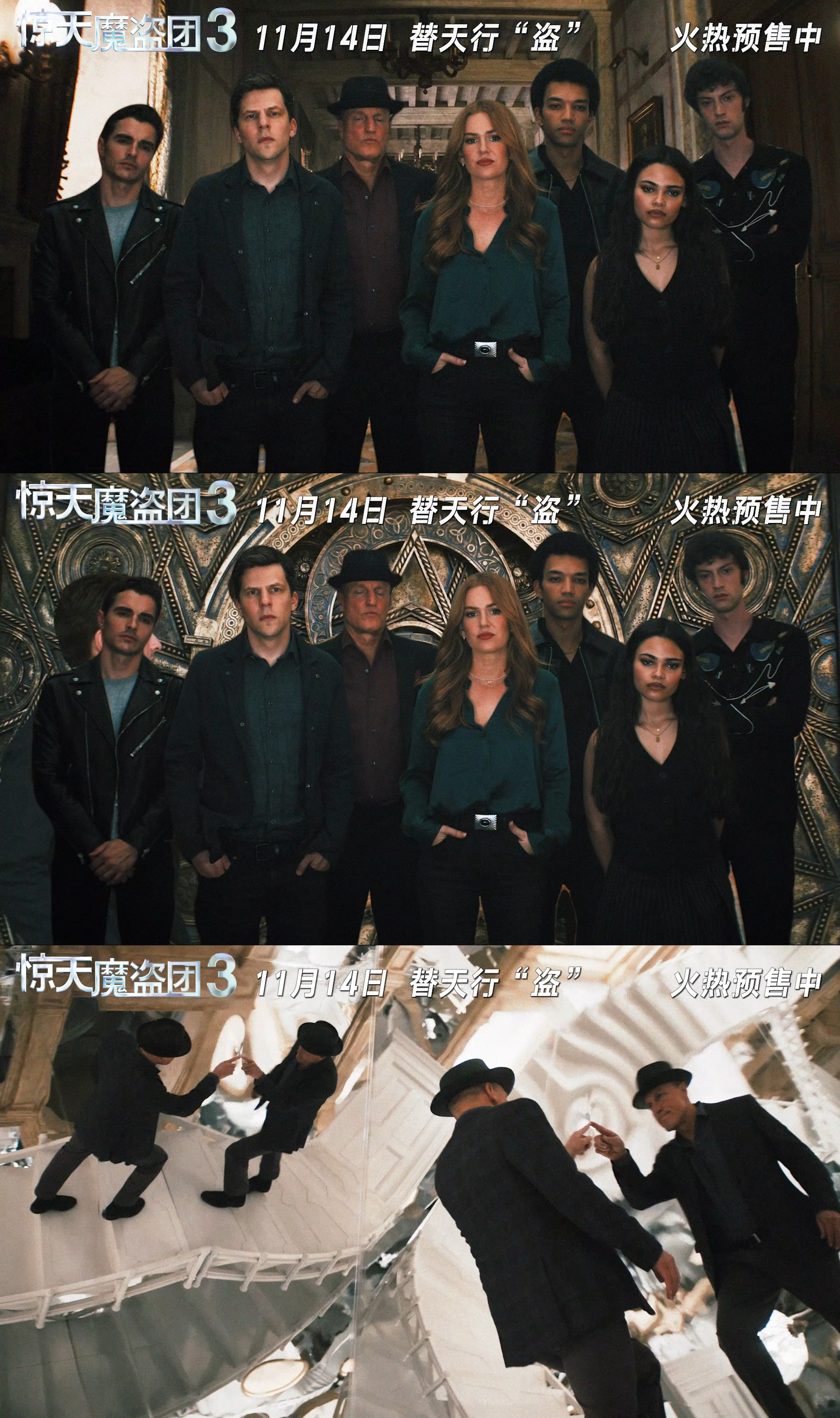 惊天魔盗团3预售开启 惊天魔盗团3预售终于开了!等了好久终于等到了!先不说初代四骑士原班人马回归,更是因为这波魔术玩得比之前还大,感觉每秒钟都在烧经费,这种电影简直是为大银幕而生!而且听说里面还专门给我们中国观众带来了东方传统戏法“三仙归洞”的彩蛋!摩根老爷子一出来那个熟悉的味道就回来了,第三部真的圆了我的合体梦...外媒都夸了这是系列最爽的一部!!预售都开了这还不冲?拉上一起看第一部的小伙伴,再来看第三部吧🥹票已买好,就等着幸福奔向影院了!