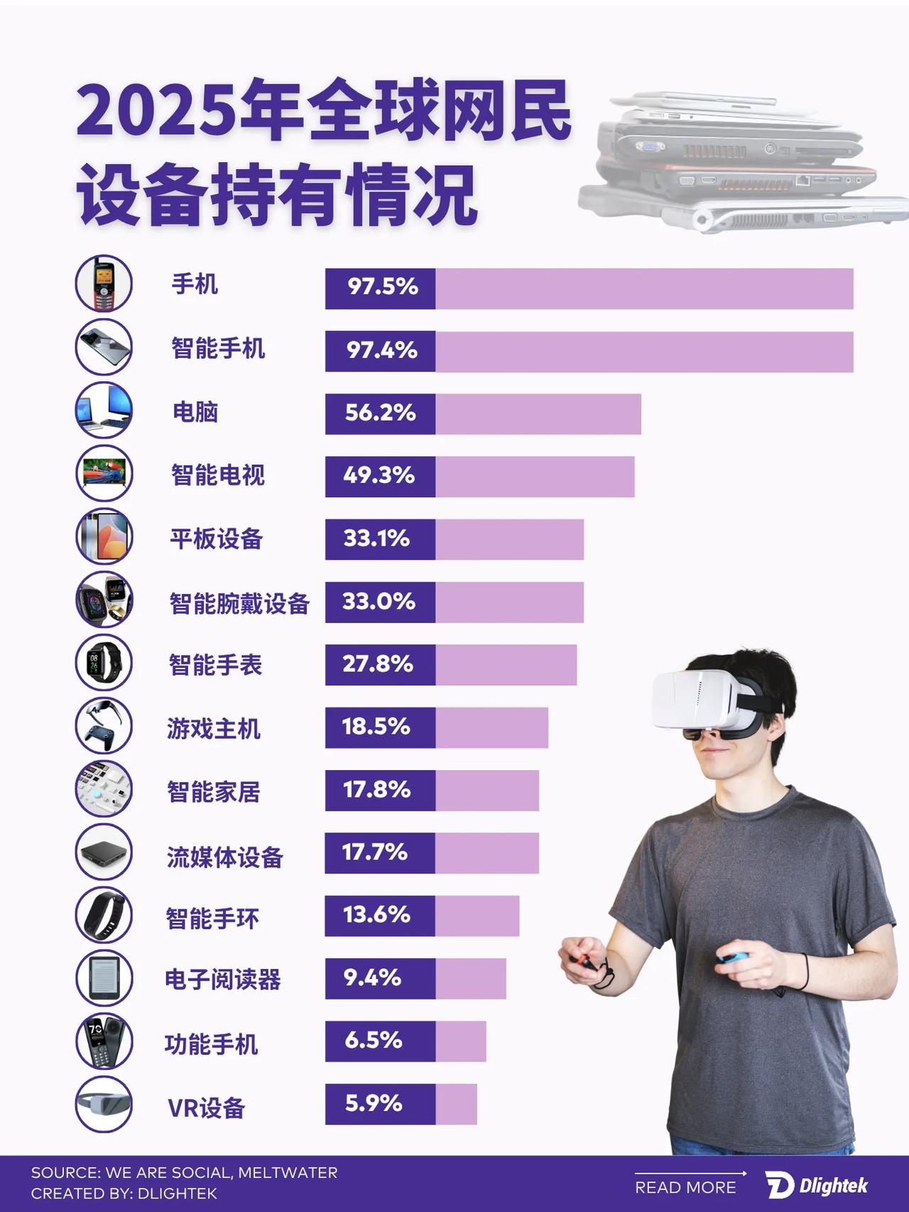 终端产品从潮汐到红海,经历了很多技术变革,手机更是成为了生活必需品,2025网民终端设备持有情况,你有哪些呢?