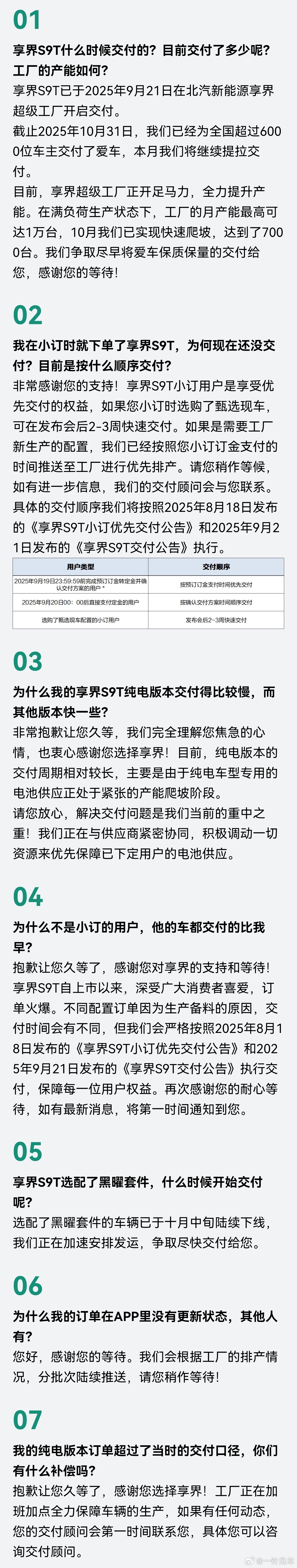 享界S9T答网友问,10月月产能已经达到7000台,工厂满负荷运转月产能高达1万台。本月新款S9就要上了,争取两台车加起来月销破万![努力]