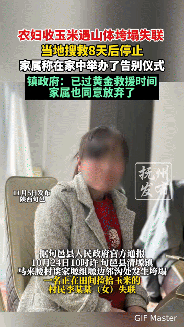 收玉米竟遭山体吞噬,农妇家属8天搜救后无奈办告别仪式 一次平常的玉米收割,怎会变成生死别离?陕西旬邑县清塬镇,农妇李某某在收玉米时遭遇山体垮塌失联。 搜救人员在险峻的塌方山体上连续搜救8天,家属从最初“活要见人、死要见尸”的执念,到因搜救难度极大而被迫接受现实。最终,家属在家中为她举办了告别仪式,整理好生前遗物,准备让她入土为安。 天灾无情,这样的结局令人扼腕。只愿逝者安息,也盼类似的意外能不再发生。