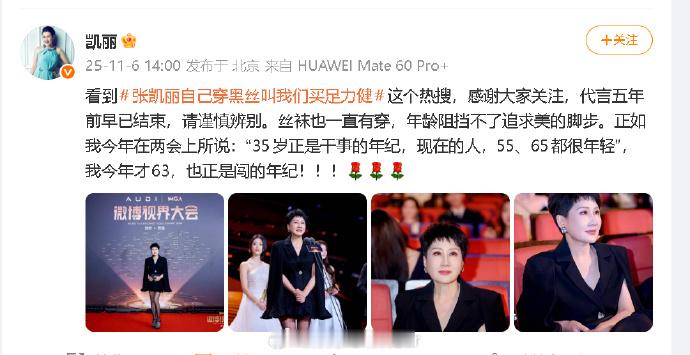 张凯丽回应自己穿黑丝,张凯丽年龄阻挡不了追求美的脚步