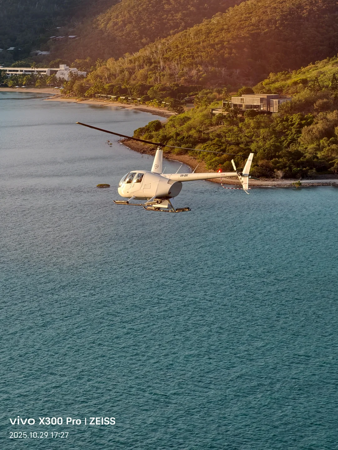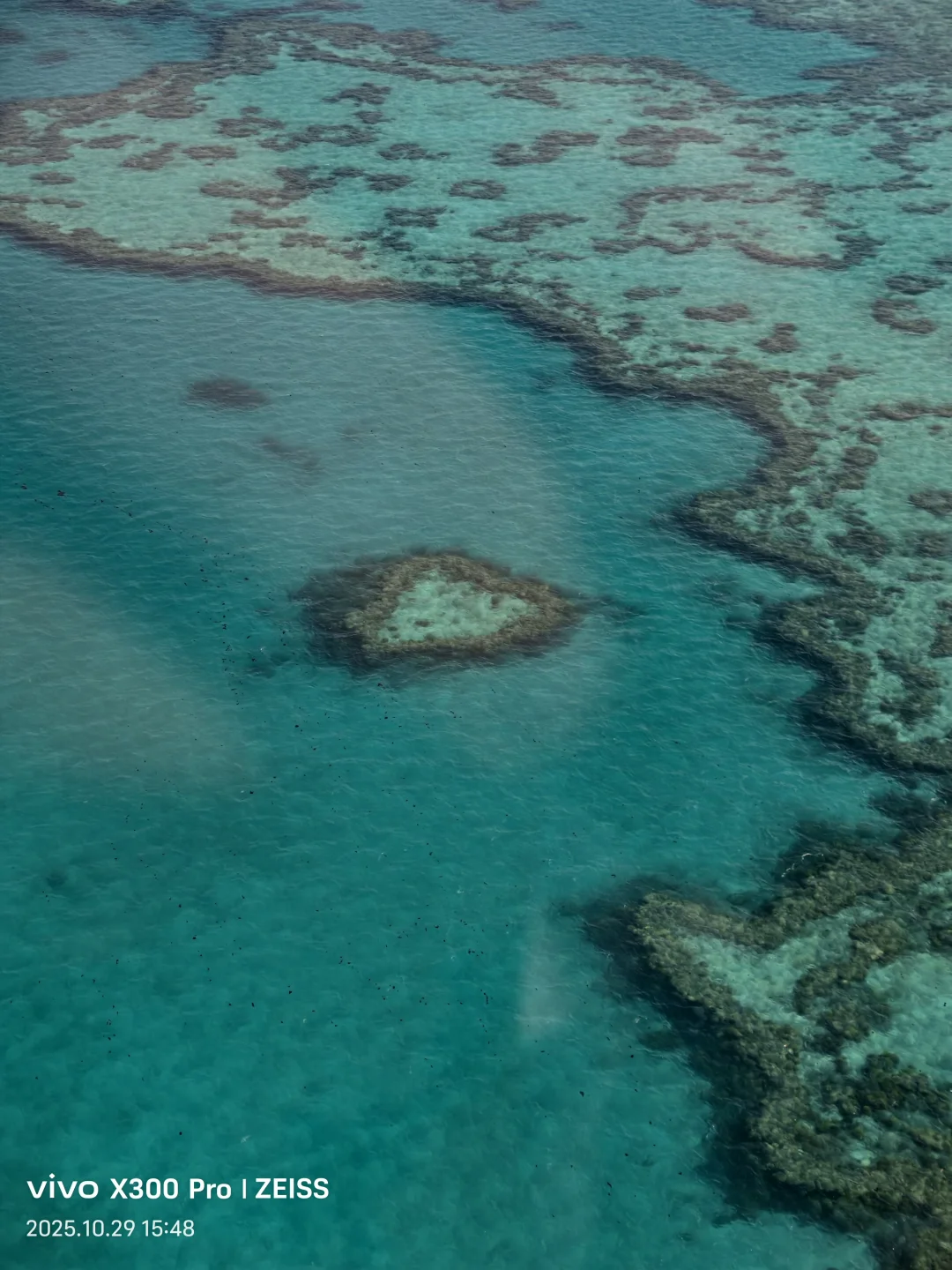 从悉尼飞到海曼岛,南半球的蓝开始变得不太真实。坐直升机俯瞰海面,那颗爱心形状的大堡礁(Heart Reef)真的在那里,安静又纯粹。vivo X300 Pro的10倍长焦在光影之间自动拉出层次,落地海曼岛洲际一切都慢下来了。海水、风、树影——时间好像在这里被搁浅。
