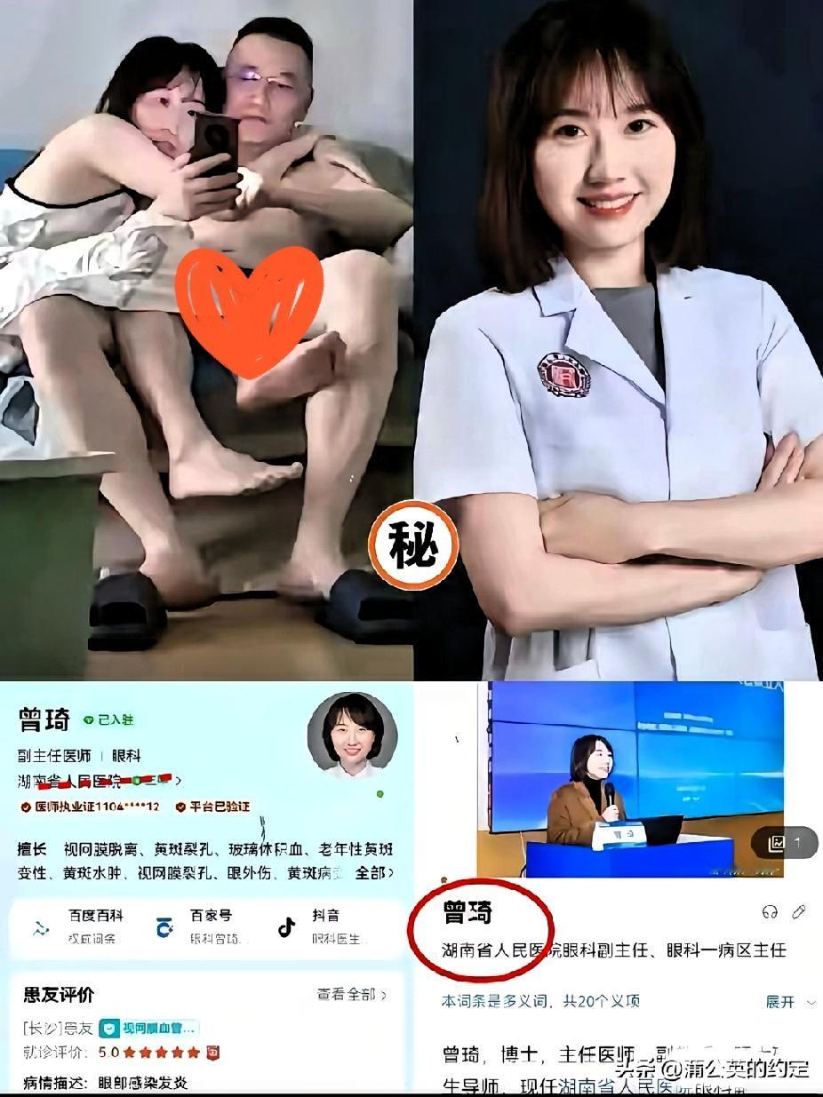 谁能想到, 湖南省人民医院眼科的 “一号难求”专家曾琦,会以不雅视频的形式冲上热搜? 她可是手握博士学位、能做复杂视网膜手术的主任医师,光SCI论文就发了20多篇,多少患者专门奔着她来治病。可现在呢?医院挂号页面显示“暂无号源”,之前积累的好口碑碎了一地。 最让人揪心的不是网友的议论,而是她背后那位没露面的父亲。想想看,把女儿从寒窗苦读培养成医疗圈骨干,得付出多少心血? 可能逢人都会骄傲地提一句“我闺女是眼科专家”,结果现在,所有骄傲都被一段视频砸得稀碎。 有人说“私德不影响医术”,可成年人的选择哪有那么简单?职称评定、患者信任、家庭期待,这些年打拼来的一切,都因为这一次的糊涂给毁了。而且用医院公家的一次性床单当私用,这事本身就不应该。 现在医院还在调查,可不管结果如何,有些东西已经回不去了。 你们觉得,要是曾琦出来道歉,她父亲会愿意站在她身边吗?评论区聊聊你的看法~