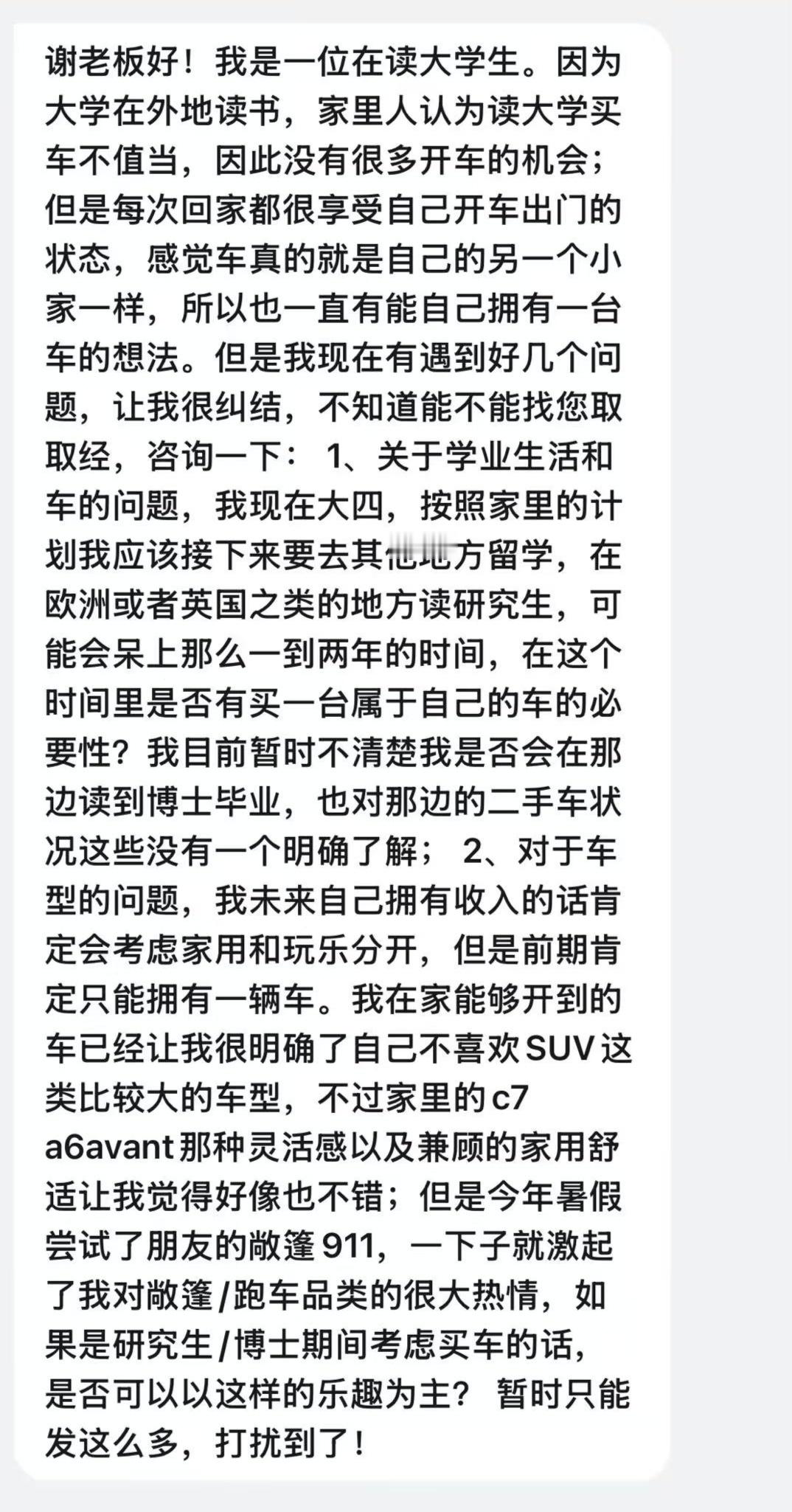 您好冠军,留学一两年时间是否值得买车,完全取决于驾驶对您有多少价值。如果特别热爱,又有预算,当然不要错过难得的海外用车机会,自驾爱车去探索这个世界,是非常棒的经历与感受。至于车辆选款,在我看来,当然是选国内体验不到的车啦!