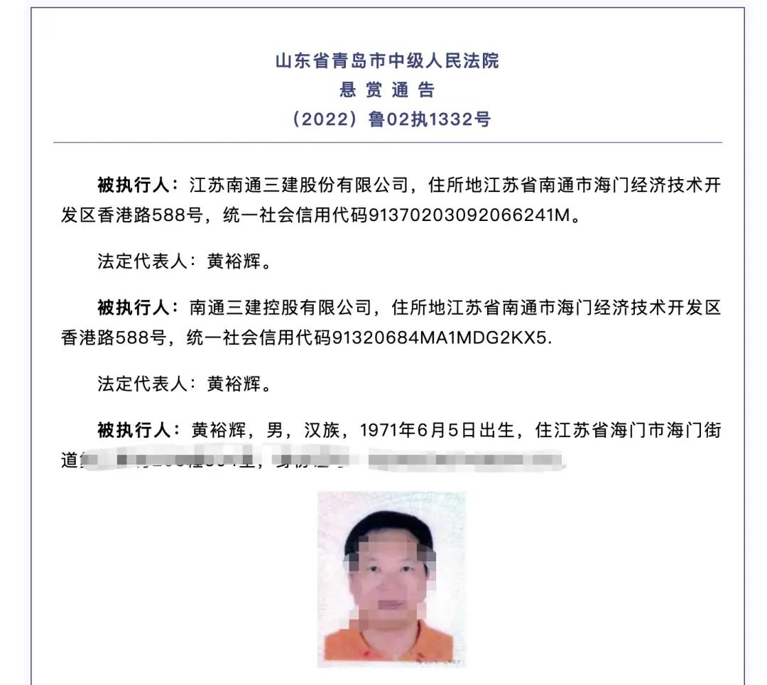被恒大拖累的南通三建董事长黄裕辉去了哪里? 山东青岛中院的悬赏公告,让世人又一次关注到南通三建的董事长黄裕辉,也再一次关注到两年前恒大的债务风波。 据说悬赏黄裕辉的赏金已经达到2500万元,可以想见黄裕辉的份量之重,涉案金额之大。 南通三建曾经是业界头部的存在,曾经是中国民营企业500强第31位,曾经建设了上海东方明珠大厦,上海金融中心大厦等举世闻名的大工程,资质和实力是建筑界的知名企业。 于是三建在快速发展的道路上榜上了中国恒大,也因为承揽中国恒大的工程成为恒大最大的债主360亿 ,然而当恒大债务危机爆雷的时候,这笔债务也就打了水漂 没有了着落。 企业的发展要注重安全,注重防范风险,南通三建将企业的发展押注在一个恒大集团,大肆承揽工程,垫付资金,最后在恒大倒下之后,自己也应声倒地,毫无自救之力。 然而南通三建不是最后的兜底者,他同时又是债主,又是欠债人,所以因为南通三建的债务危机而受到影响的大有其人,这就是多米诺骨牌效应。 现在,满世界都在找黄裕辉,即便找到了,又能怎样? 许家印不是已经被控制,但是,死猪不怕开水烫,你能怎么着? 做企业的一定要有安全意识,有长远规划,盲目跟风,盲目投资,赌博式的押注经营只能让企业立于危崖之下,时刻都有摇摇欲坠的风险。