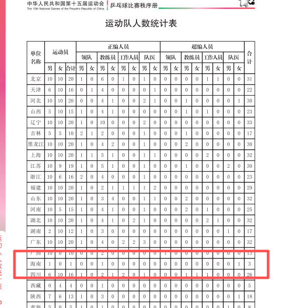 ???全运会乒乓球秩序册发布