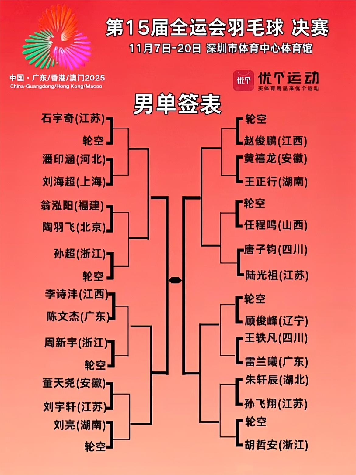 第15届全运会羽毛球男单的签表出炉,石宇奇想要成功卫冕的难度还是不小的。 和国羽男单的两位好手翁泓阳和李诗沣分在了同一个半区,想进决赛就要先过翁泓阳,再过李诗沣。 且不说神经刀的翁泓阳这次有怎么样的表现,就说李诗沣吧,也是更难缠的对手,全年备战石宇奇的他可不是闹着玩的。 征战全运会真是不容易,队友之间互相太熟悉了。