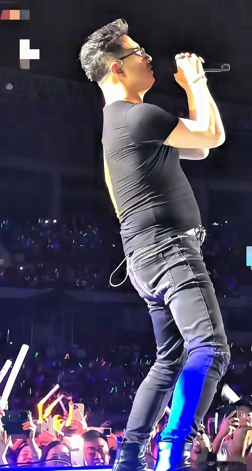 汪峰对紧身黑T和紧身牛仔裤的执着已经到了“走火入魔”的地步了吧? 即使身材发福,小肚子圆鼓鼓,腰间赘肉横生,也阻挡不了他对紧身衣裤的热爱。 好像不穿一套紧身服装就体现不出他摇滚唱将的气质一样,也可能不这么穿他怕发挥不出自己的摇滚实力吧? 总之,汪峰开演唱会是绝对少不了紧身衣裤的。可能他觉得这样穿才最有魅力吧?