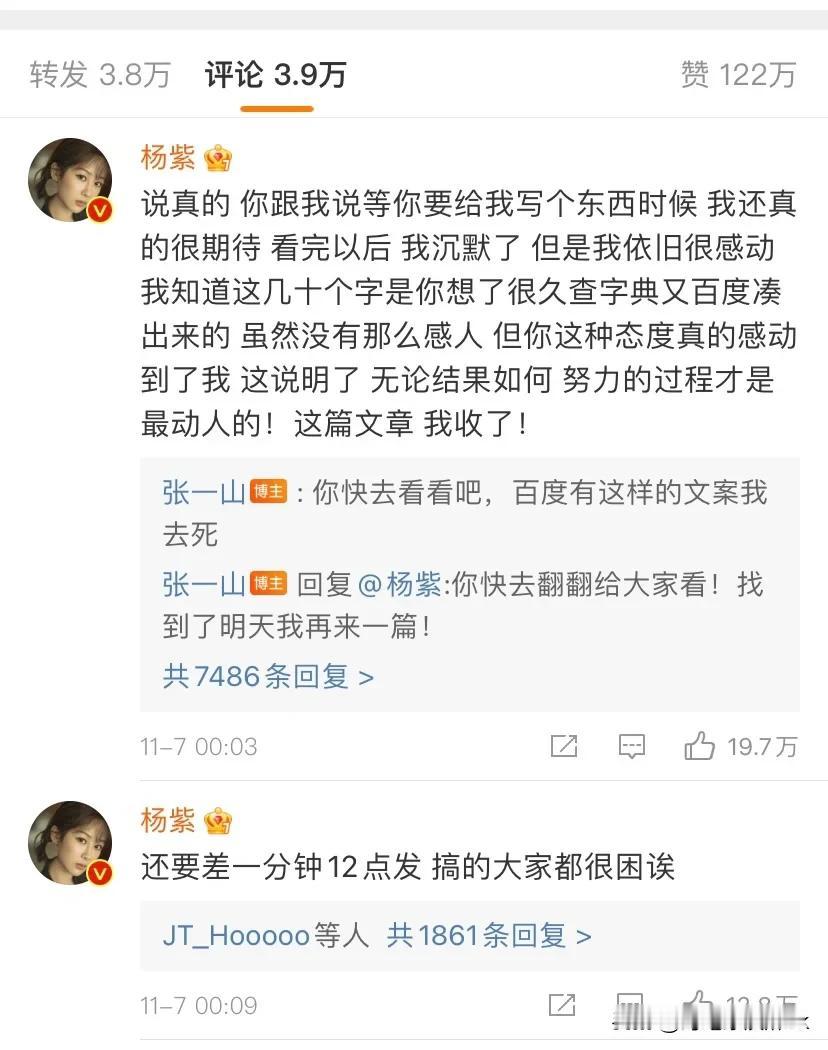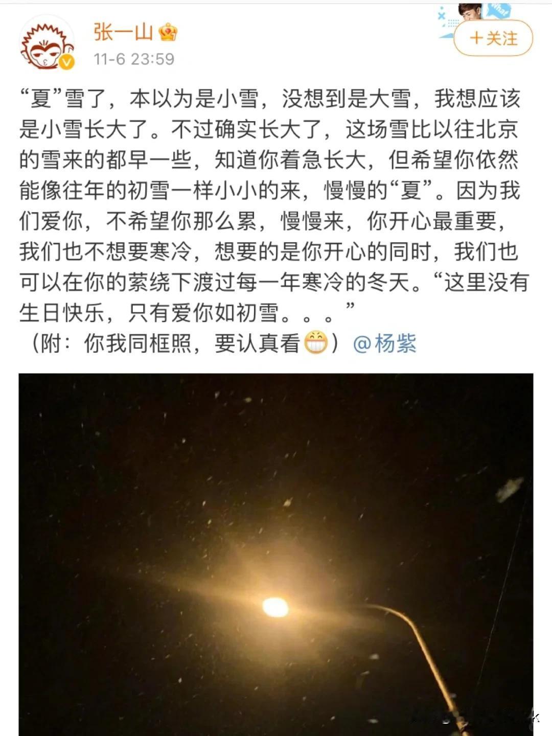 我总觉得杨紫怼不过张一山,但是结局张一山都会让着她 张一山和杨紫的感情,是娱乐圈公认的,每年生日后援会都会祝福对方生日快乐,前几年他俩还会在网上互怼,吵嘴架,后来就比较少了 张一山说过,就算全世界都背叛她,他也会站在杨紫身后,背叛全世界,张一山说杨紫不是她的菜,她是馒头,主食不可缺少 每一年我都等张一山表白,但是十几年过去了,还没有等到,蹲一个今晚的张一山