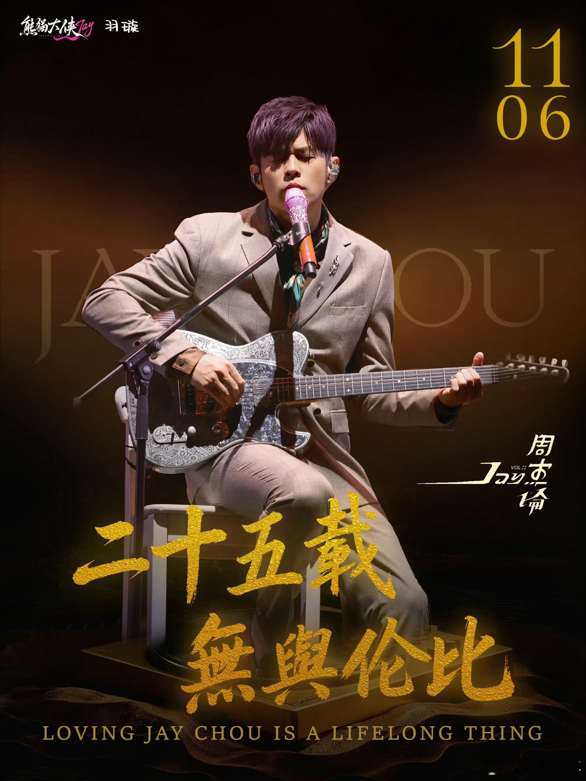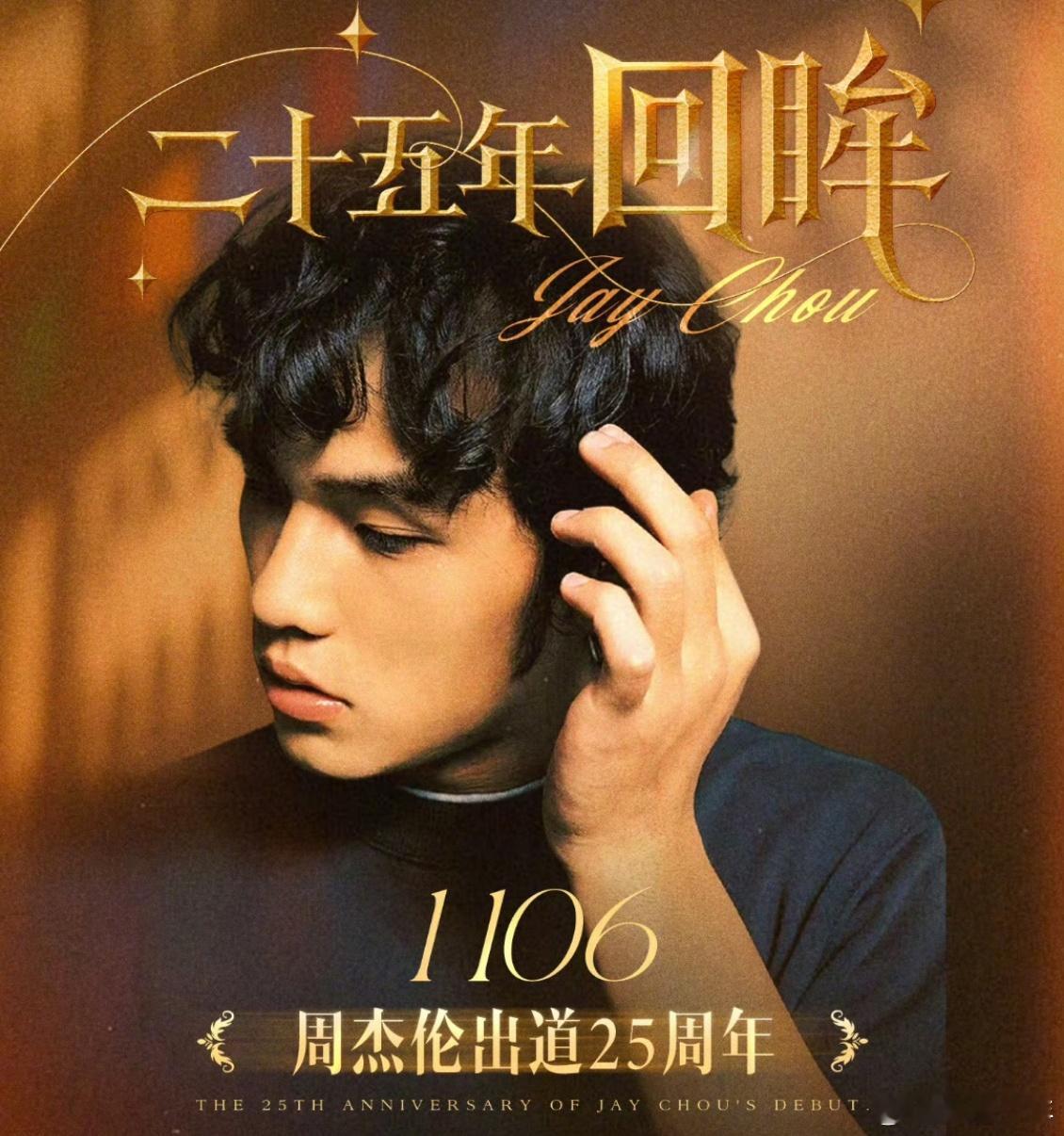 周杰伦纪念出道25周年 出道25周年,依然爱你如初。你用音乐描绘了我们的青春,我们用陪伴见证你的成长。周董,生日快乐!
