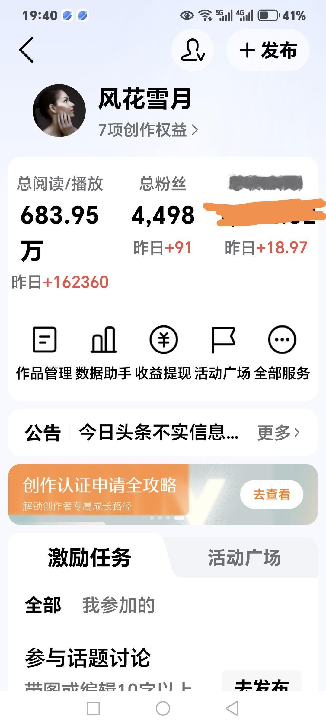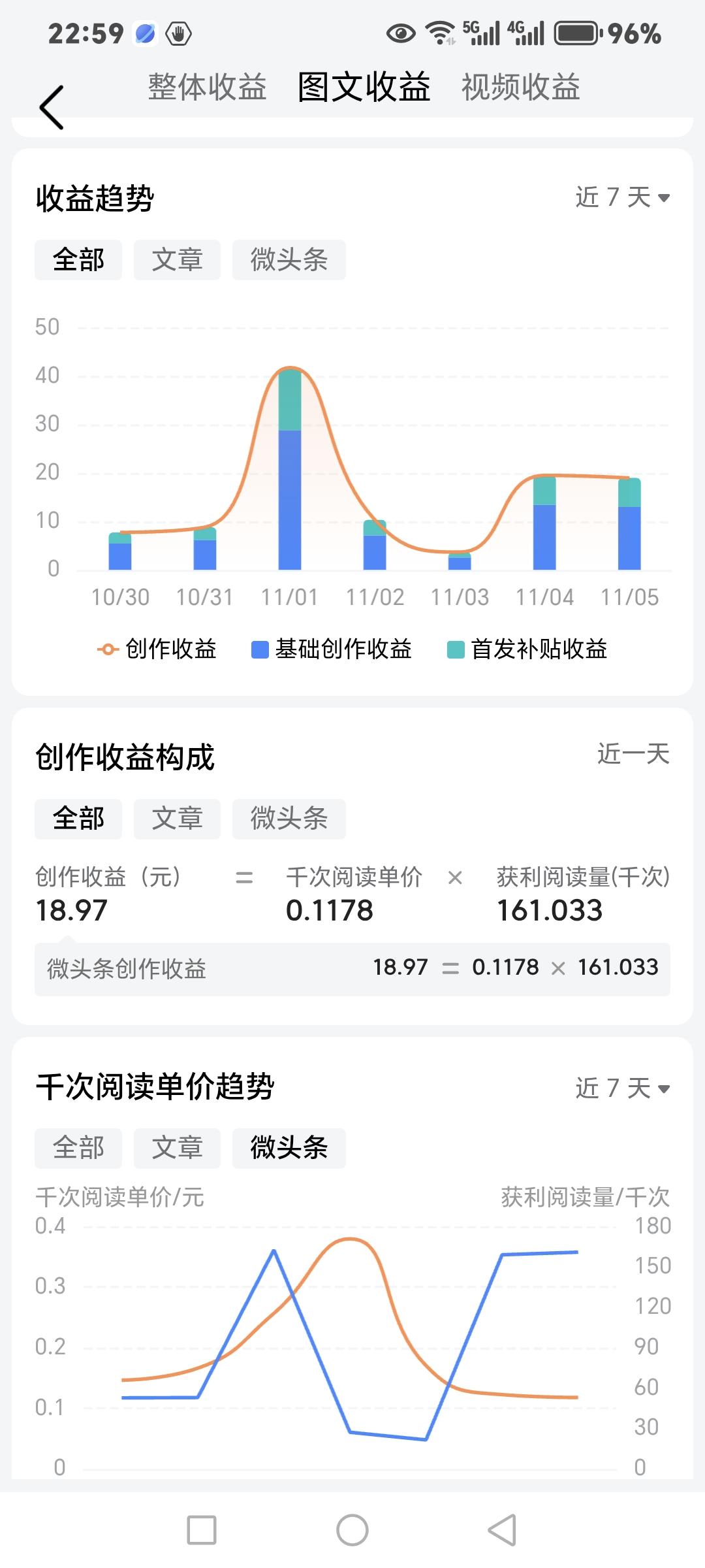 我在微头条获16万的阅读量,太搞笑了,收益却超出了我的认知,要知道收益的条件,是根据粉丝阅读以及展现等多种因素的考虑下给出的,并不是每达到千次阅读量,平台给的单价统一不说。像我这样16万的阅读量,平台给出的单价是千次0.11元,16万的阅读仅得18.97元,太低了吧,这极大的打击了写作的积极性,诸君的千次阅读单价没有比我更低的吧。