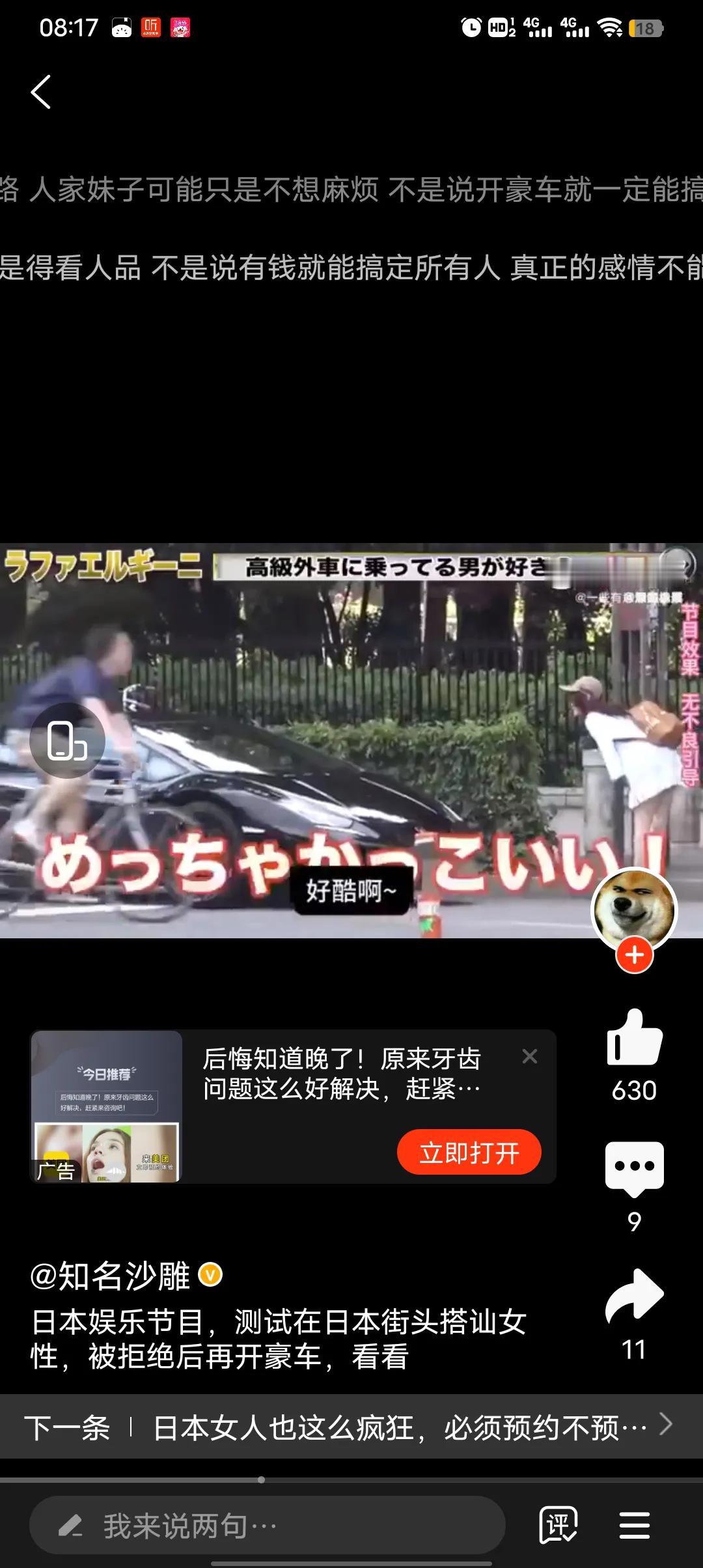 真不是就咱们姑娘喜欢豪车,喜欢钞能力。 近日岛国的一个娱乐节目,请了一个富二代小黄毛做了一个测试。 小黄毛穿了一身普通衣服,把自己的兰博基尼停在远处,他看到一个漂亮姑娘,上来就搭讪人家姑娘可能应该看他穿着普通,就直接拒绝了,小黄毛遭拒走向自己的豪车,转折点来啦!小姑娘以迅雷不及掩耳之势,跑到座进豪车的小黄毛,这个舔啊!后面应该你知道。 第二个小黄毛看见一个小红,漂亮又性感,小红拒绝得干脆说我座不惯面包车对不起,可人家小黄毛也没说自己开面包啊!小黄毛遭拒后走向自己的豪车,那熟悉的一幕又出现啦。 第三位姑娘穿比较有气质,我以为能有不一样的结果,结果还不如上面那两位,黄毛说请姑娘吃饭,姑娘一看黄毛打扮,直接来一句我有约了,那黄毛心想别急,哥一会就拿捏你,黄毛刚座进自己的兰博基尼,小姑娘立马追上来跟黄毛说,我刚刚的约会临时取消了,你不是要请我吃饭吗?小黄毛微微一笑小样我还拿捏不了你。 看来全世界的姑娘都喜欢豪车钞能力,一样全世界的男人也一样,要是我站在马路边上,一小姑娘开着豪车非要请我吃饭,你说我好意思拒绝吗?我肯定飞到她车上,我就怕我中年大叔的大嘟囔坐不进她的豪车,没事我让她开跑车在前面跑,我在后面追 拜金女 豪车 如果你被陌生人搭讪要微信你给不给 斯文黄毛 精致小黄毛 黄毛女人 黄毛妹子 黄毛小帅 小黄毛座驾 黄毛颓废记 黄毛炒饭 黄毛vibe 黄毛小嘉 黄毛小哲 法国小富婆