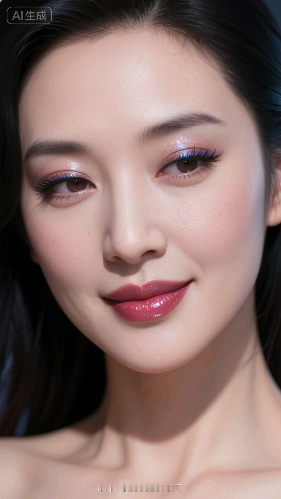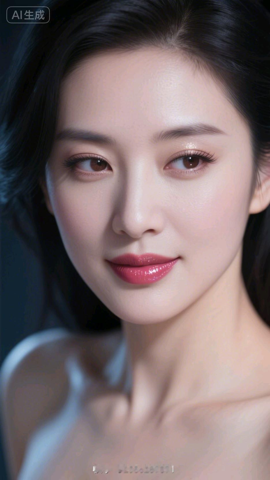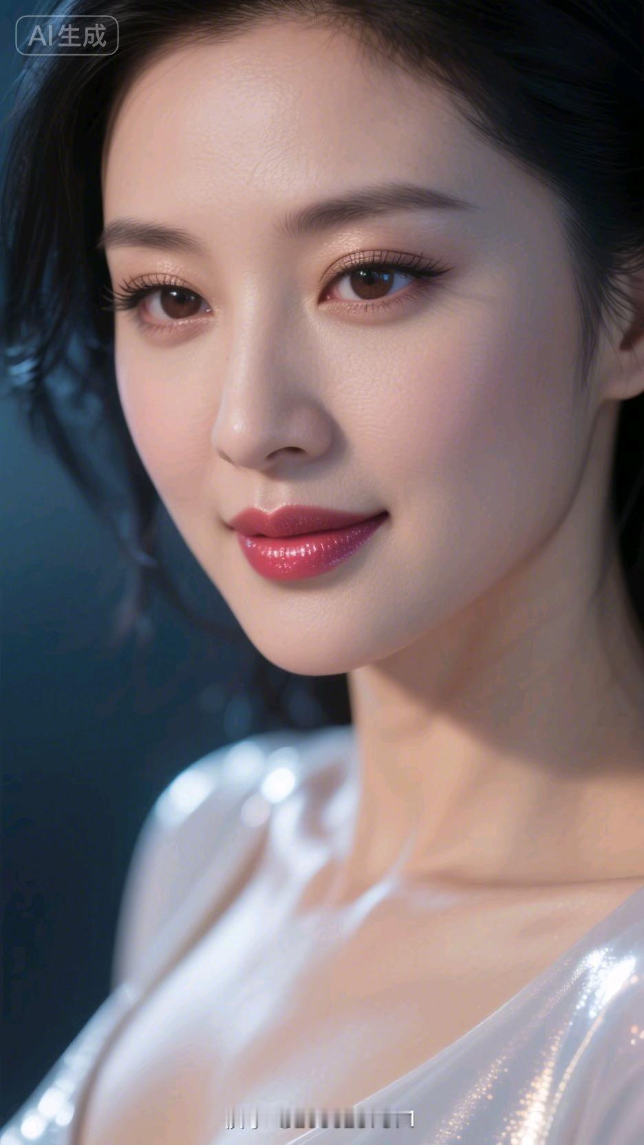 温柔眼妆,甜美笑容,完美无瑕的肌肤,AI生成的完美女神。