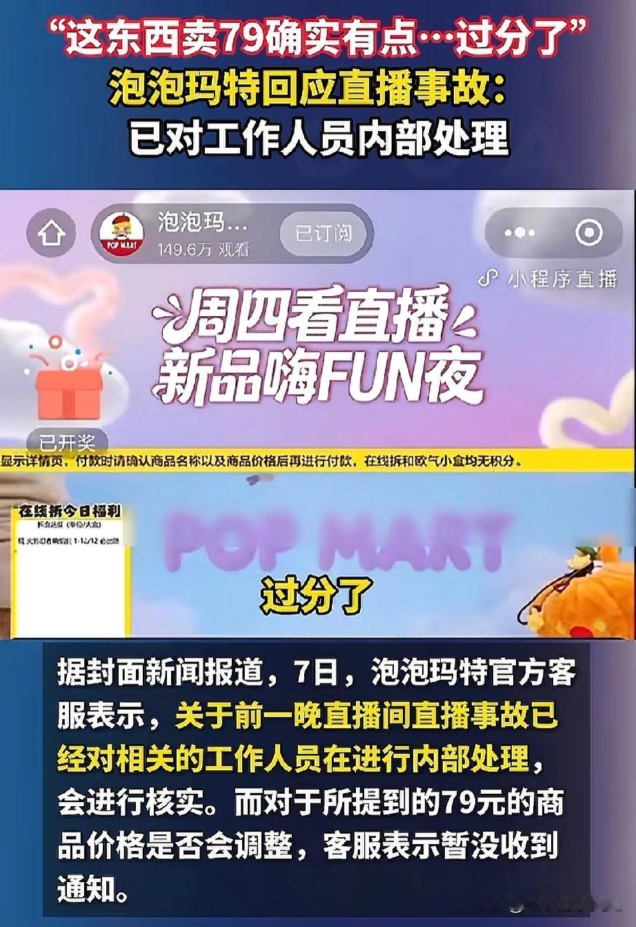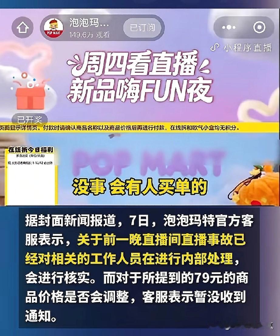 【#泡泡玛特回应直播事故#:在内部处理】#泡泡玛特直播事故#11月6日,有网友