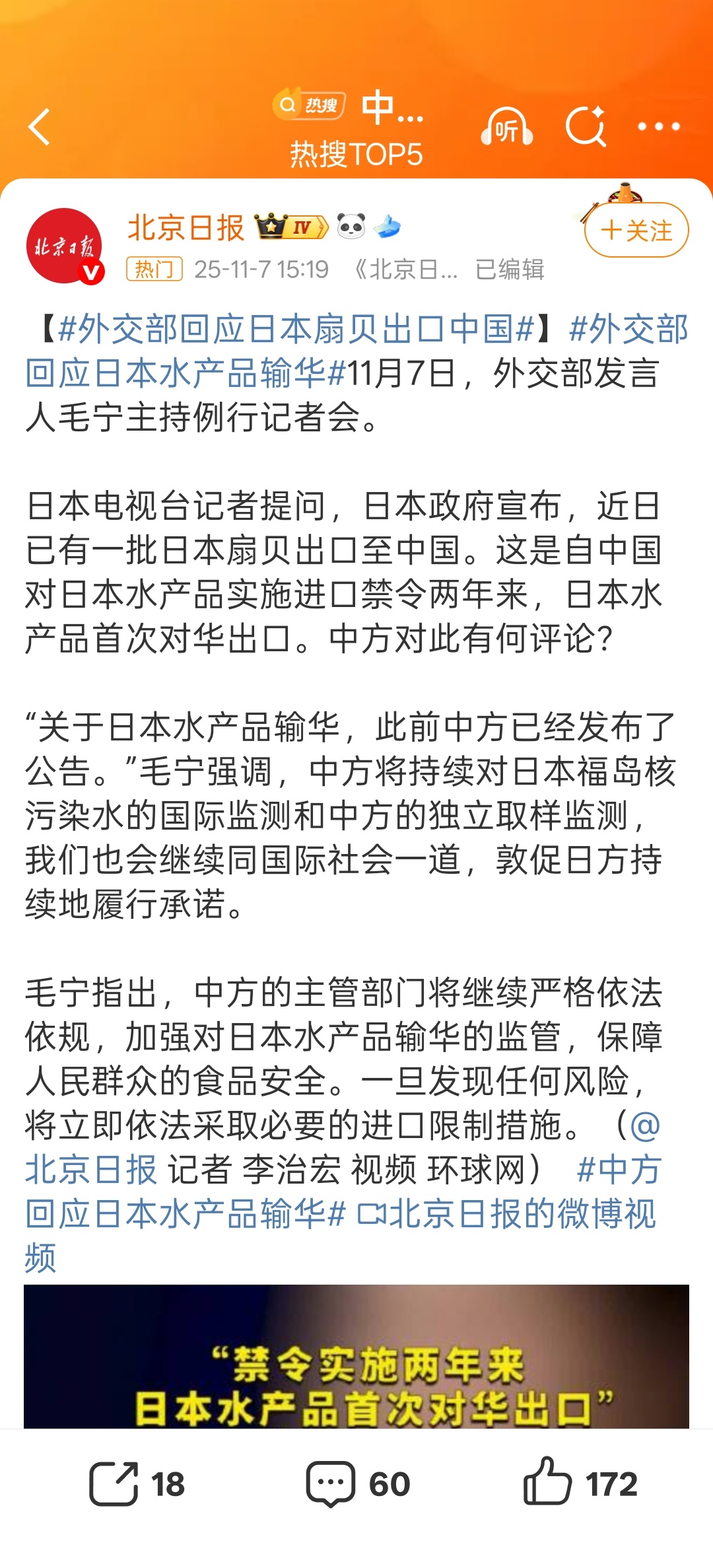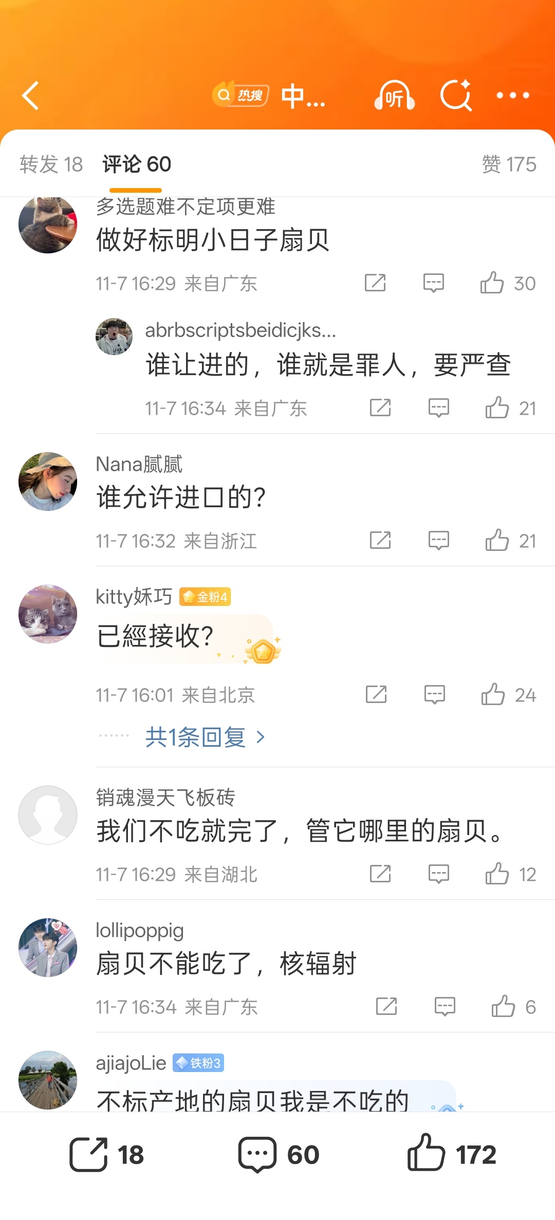 日本扇贝已出口至中国之前宣传危害宣传的比较到位,现在要进口,网友们表示不接受