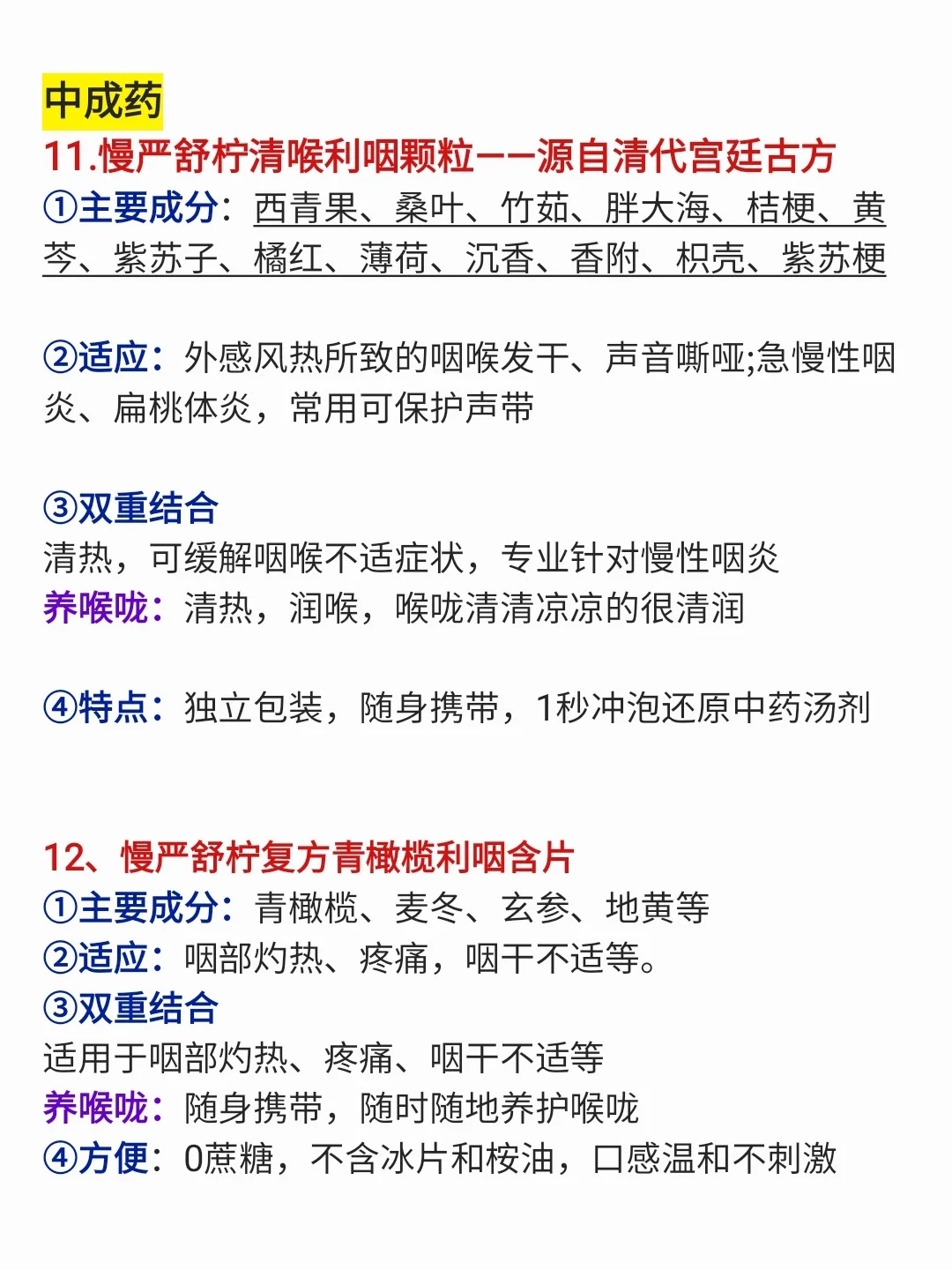 不知道有没有人有这种困扰——一到换季,嗓子就开始难受?尤其是入秋之后,早晚凉、空气干,慢性咽炎就找上门。一开始只是喉咙微微发痒,没过两天就变得干涩发紧,连喝水不能缓解。慢慢地,连吞咽都带着隐隐的刺痛,严重时声音沙哑,开口说话都成了一种负担。加上平时工作忙、用嗓多,夜里喉咙一痒,翻来覆去睡不踏实,真的特别难受。😣 每天早上醒来,喉咙都又干又痛,声音也是哑的。白天上班,嗓子的异物感和干痒总在刷存在感,搞得人注意力很难集中;到了晚上,本以为能好好休息,却因为喉咙不舒服,反而更难入睡……真是被折腾的身心俱疲,太折磨人了。🌙 为了舒服一点,试过不少方法:不停地喝温水、泡蜂蜜水、对着加湿器吸蒸汽……不能说完全没用,虽然有一定帮助,但效果总是短暂且不稳定。这时候可以选择一些有针对性的产品帮助缓解。🤔 譬如慢严舒柠清喉利咽颗粒:除了对症急慢性咽炎外,对外感风热所致的咽喉发干、声音嘶哑或换季感冒高发或在空调房里待久了之后,出现咽干咽痛,都可以喝上一包。 它是十三味中药组方,能从根源祛火,清热利咽,宽胸润喉的同时温和养护喉咙和声带 🍃 日常也需要注意对咽喉的养护。慢严舒柠还有一款青橄榄利咽含片,里面含有像青橄榄、玄参、地黄、麦冬这些中药成分,具有滋阴清热,利咽解毒的功效。平常有事没事,都可以含2片复方青橄榄利咽含片在舌根处。 慢严舒柠是桂龙药业旗下的,是36年的老牌子了。平常家中或办公室常备慢严舒柠,让我在繁忙的工作中有了更多的从容。👍