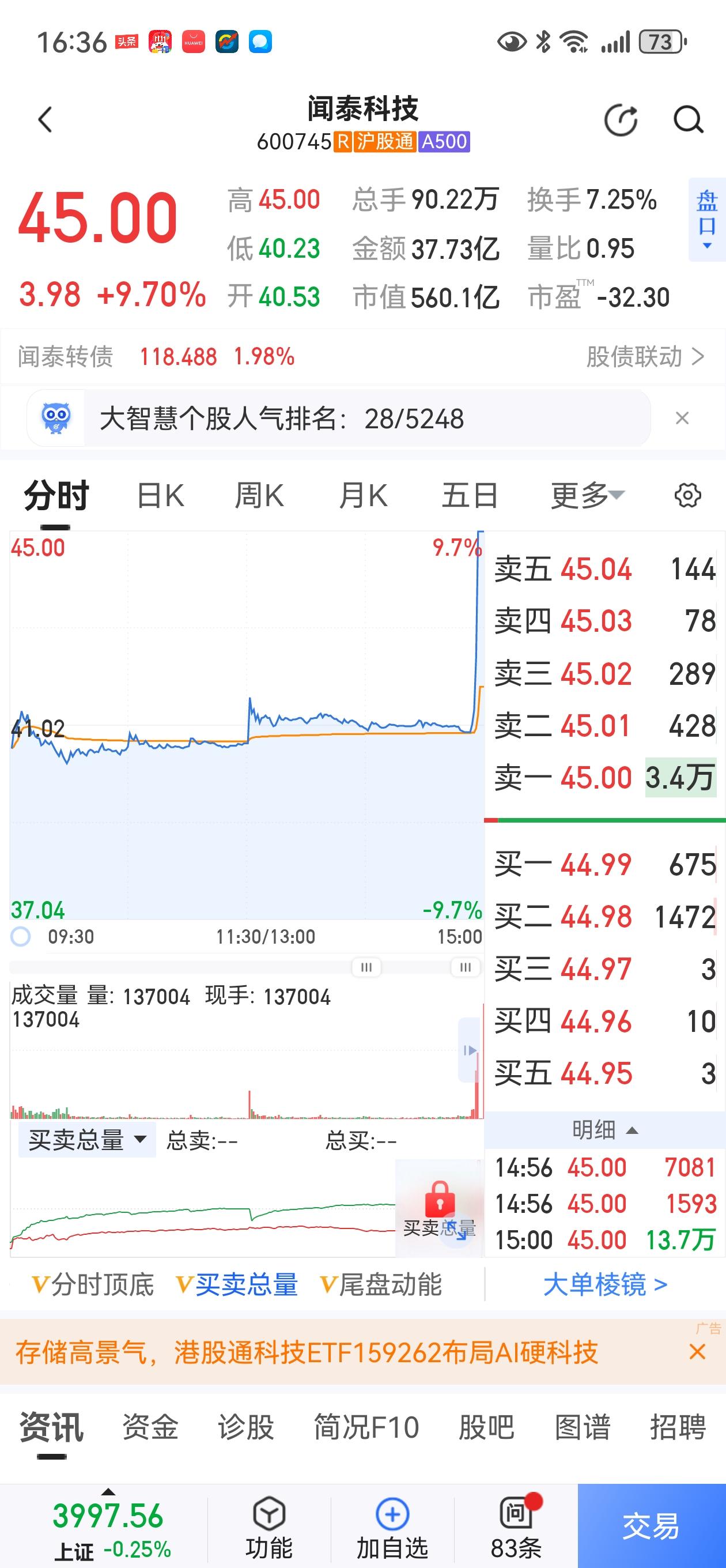 一分钟拉升9%,接近涨停!所为何事? A股市场真是瞬息万变,分时图织了一天布,尾盘一个消息,几分钟便急拉9个点。 临近收盘,有消息传出:安世中国芯片即将恢复供应。于是,做为控股股东的闻泰科技,直接用暴涨表态欢迎。 现在的A股季报披露完毕,市场正处于一个选择观望,消息真空期。一个利好消息便可以催化股价,引爆利好发酵。 接下来,量子计算机取得新突破,一类抗癌新药成功上市,固态电池新技术量产,具身机器人及大模型行业落地,脑机接口普及等等消息,都会引暴国产替代“硬科技”板块,再次崛起。