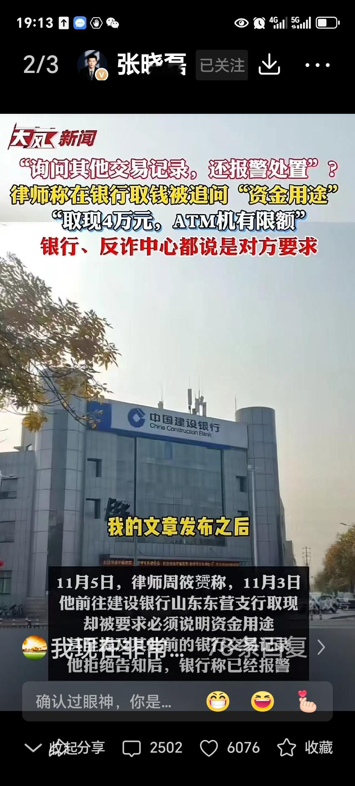“银行这次碰到硬茬了!”山东东营,律师去银行取4万现金,被追问“资金用途”,律师认为这侵犯自己的隐私权,拒绝告知,银行竟然报案处置!律师这下忍不了,把这事情发到了网上,银行领导低头道歉,但律师觉得事情还没完…… “银行这次碰到硬茬了!”山东东营,一名律师去银行取4万元现金,本以为这只是一次普通的金融交易,却没想到迎来了一场“隐私与权益”的激烈碰撞。 事情的起因很简单:律师走进银行,准备取出平日里的工作经费,却被银行工作人员追问“资金用途”。这位律师本能地觉得,这是侵犯了个人隐私权。毕竟,银行作为金融机构,理应保障客户的隐私安全,而不是成为“审查员”。他坚决拒绝透露资金用途,结果银行竟然报警,试图以“非法取款”或“可疑资金”来压制他的合理要求。 这件事在网络上引发了轩然大波。有人支持银行的“风险控制”,但更多人站在律师一边:在个人隐私和金融安全的边界线上,银行是否越界了?难道我们的隐私就可以被随意“问询”吗?这不禁让人深思:在这个信息爆炸、隐私被不断侵蚀的时代,个人权益到底该怎么捍卫?银行的“安全措施”是否变成了“监控工具”?我们又该如何在保护金融安全的同时,维护自己作为个人的尊严和隐私? 更令人担忧的是,这次事件揭示出金融行业普遍存在的“过度审查”问题。很多银行在“防洗钱”“反恐怖融资”的旗号下,似乎变成了“隐私的掠夺者”。他们用繁琐的“问询”来试探客户的底线,甚至不惜“报警”来施压。这种做法,是否已经偏离了服务客户的初心?难道我们在享受金融便利的同时,也要忍受“被审查”的苦楚? 律师发声后,银行领导低头道歉,但这份“道歉”似乎还不足以平息公众的愤怒。因为,隐私不是“可以商量”的交易,也不是“可以随意侵犯”的权利。每个人都应该有权选择自己愿意透露的范围,而不是被动接受“信息审查”。这场风波或许只是冰山一角,但它折射出的是我们每个人都必须面对的现实:在数字时代,个人隐私的边界究竟在哪里?我们又该如何在“安全”与“自由”之间找到平衡点? 这不仅仅是一个银行的故事,更是每个普通人都可能遇到的“隐私之战”。它提醒我们:维护权益,不能只靠“被动忍让”。我们需要更清晰的规则,更有力的法律保障,也需要每个人都能站出来,为自己的隐私发声。 这场“隐私之战”,还远未结束。你我都在其中,等待一个公正的答案。你怎么看?是不是也曾在类似的场景中感到无助?留言告诉我,让我们一起为隐私权益发声!律师调查流水 东营律师