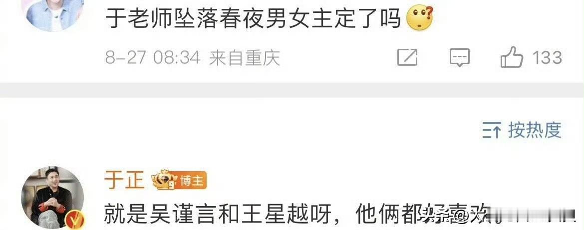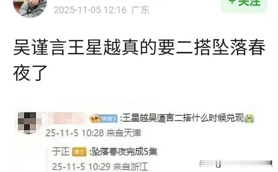 我感觉于正没有撒谎,吴谨言虽然流量一般,但影视资源并不算差。 因为她的影视实绩确实能打,上限可以和顶流杨紫一较高下,下限也比很多同龄流量🌸还要好。 从她和「弘昼」谈了那么多年也不分手,甚至还结婚生子了,就能看出来,吴谨言对于当顶流🌸也没什么野心。 现在这样的状态也许正是她追求的,没有流量的压力,也不缺戏拍。 在合作陈哲远之前,甚至都很少看到🈶黑她的「对家粉」 所以我觉得江山为聘这个项目,陈哲远不像渡劫,吴谨言更像[笑哭]