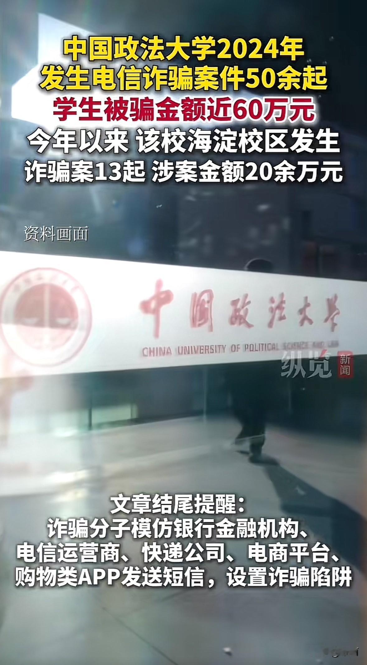 中国政法大学“平安法大”刚通报,2024年学校发生50多起电信诈骗,学生被骗近60万元,2025年至今海淀校区又有13起,涉案20余万元。有学生因手头紧,信了“银行预授信额度”短信,点链接下非正规APP,签了改不了的贷款合同,还被说银行卡号错冻资,一步步掉进陷阱。 按理说法学生懂法律,可照样被骗,关键是骗子伪装太真,再加上紧急用钱时的侥幸心理。这提醒大家,不管懂不懂法,都别点陌生链接、装非正规APP。涉及钱的事多留个心眼,不确定就打96110问问,别让骗子钻了空子。