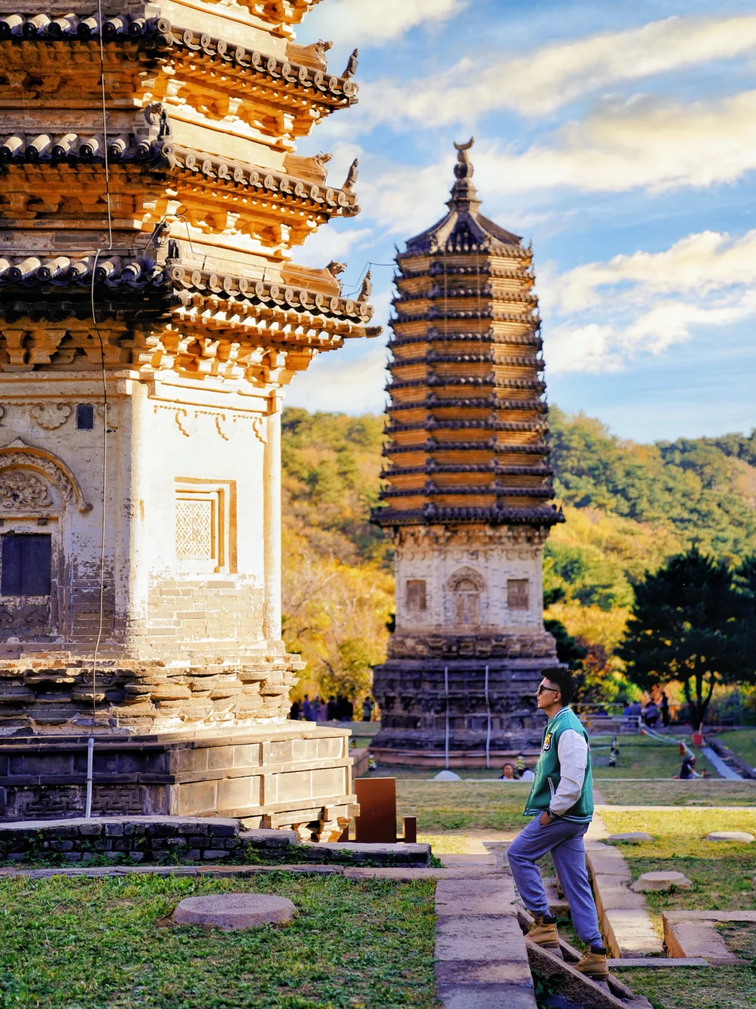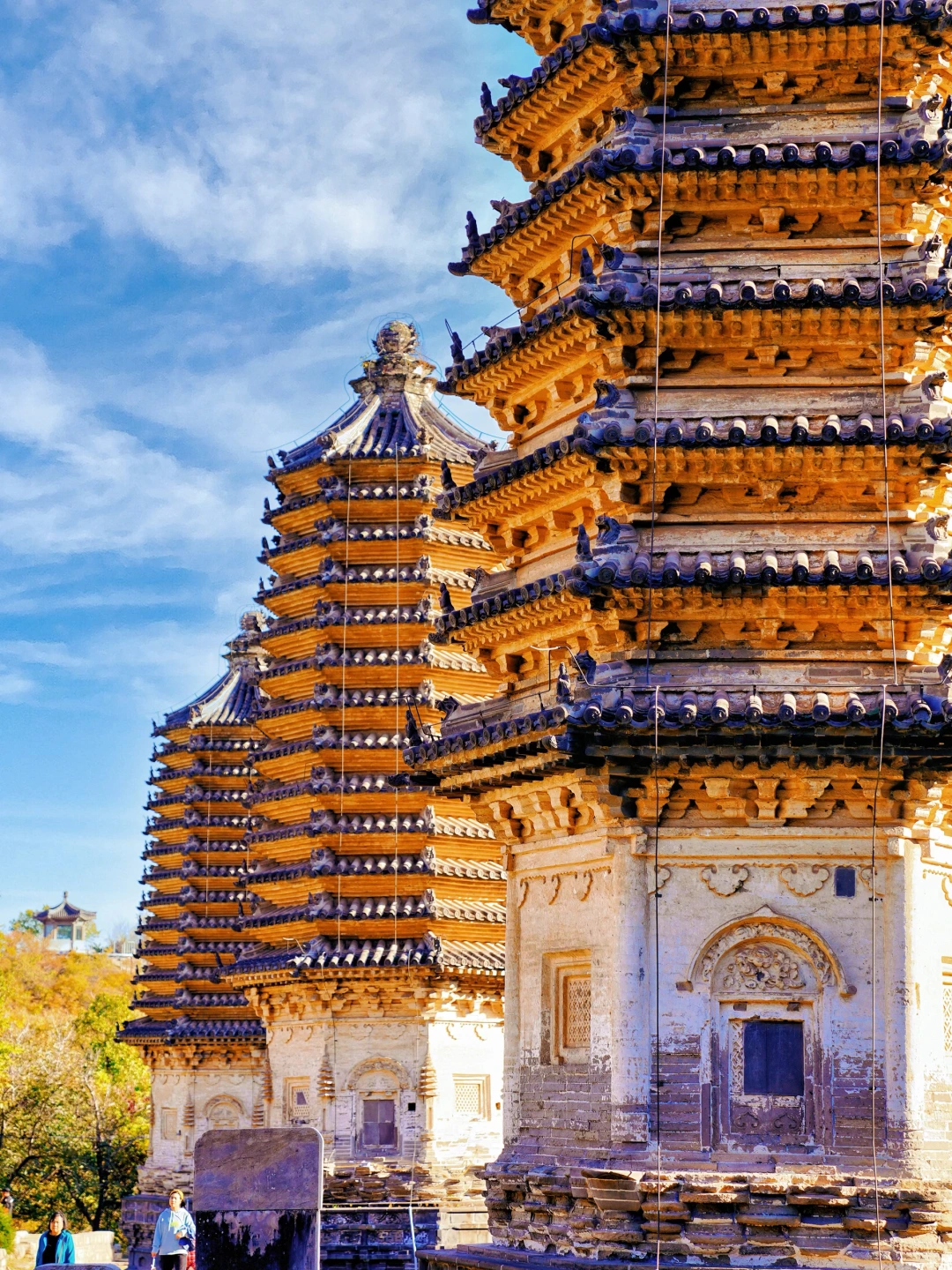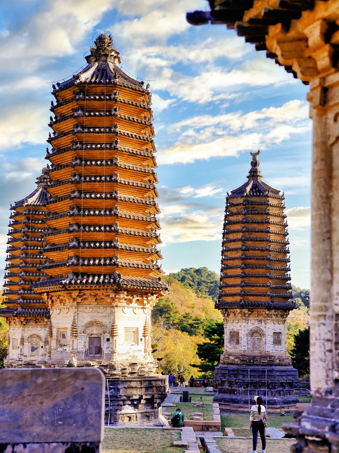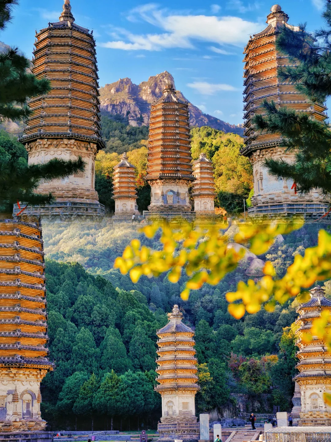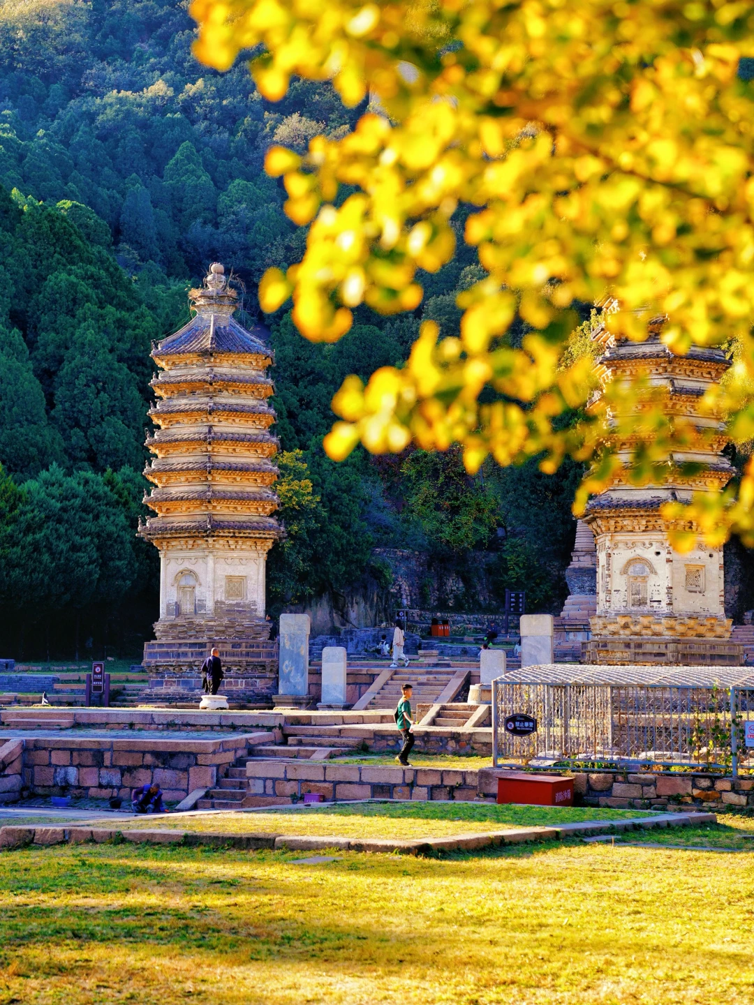 3️⃣每到秋季10月底-11月初,金黄的银杏与古塔相映,赏秋好去处