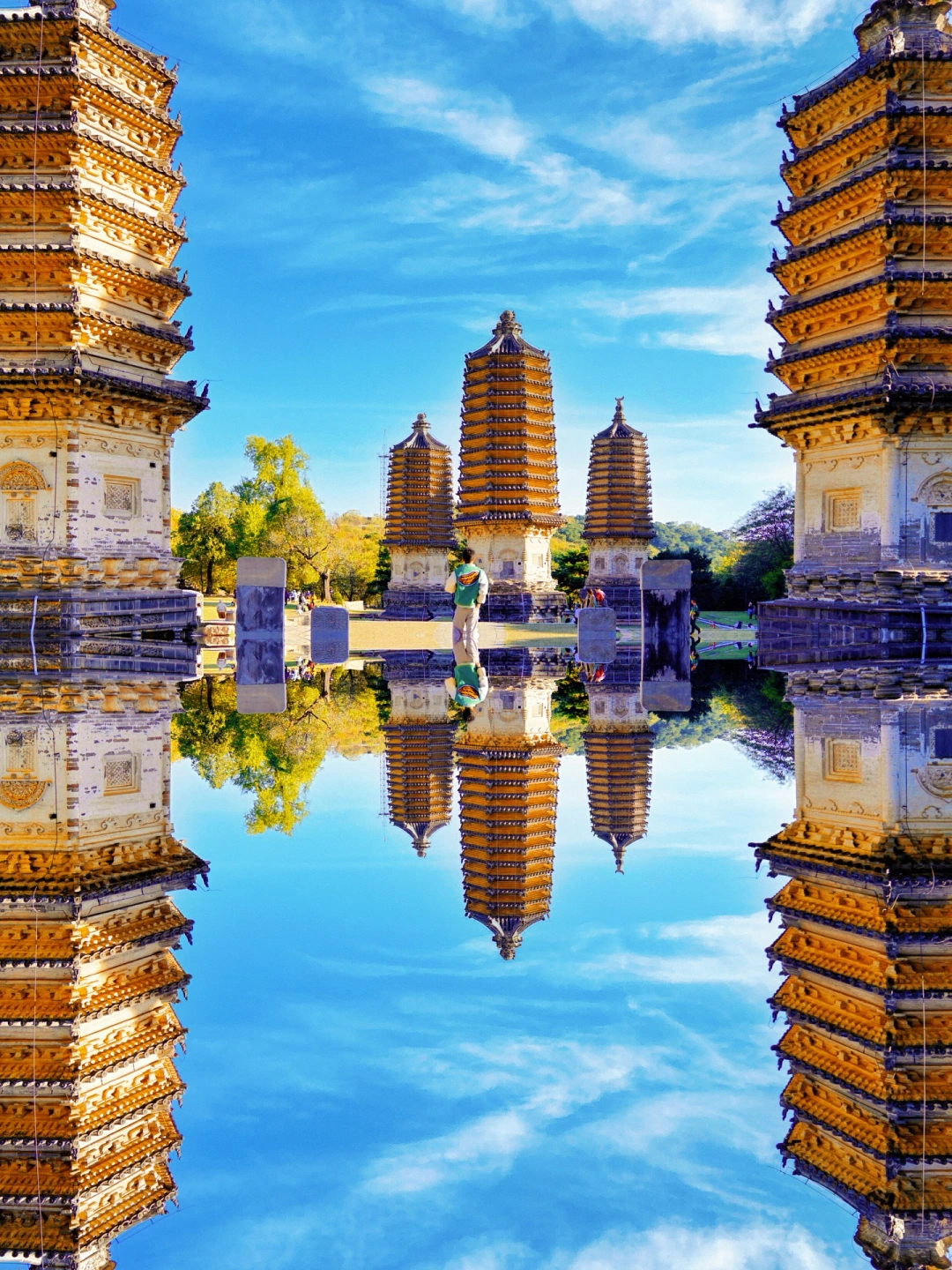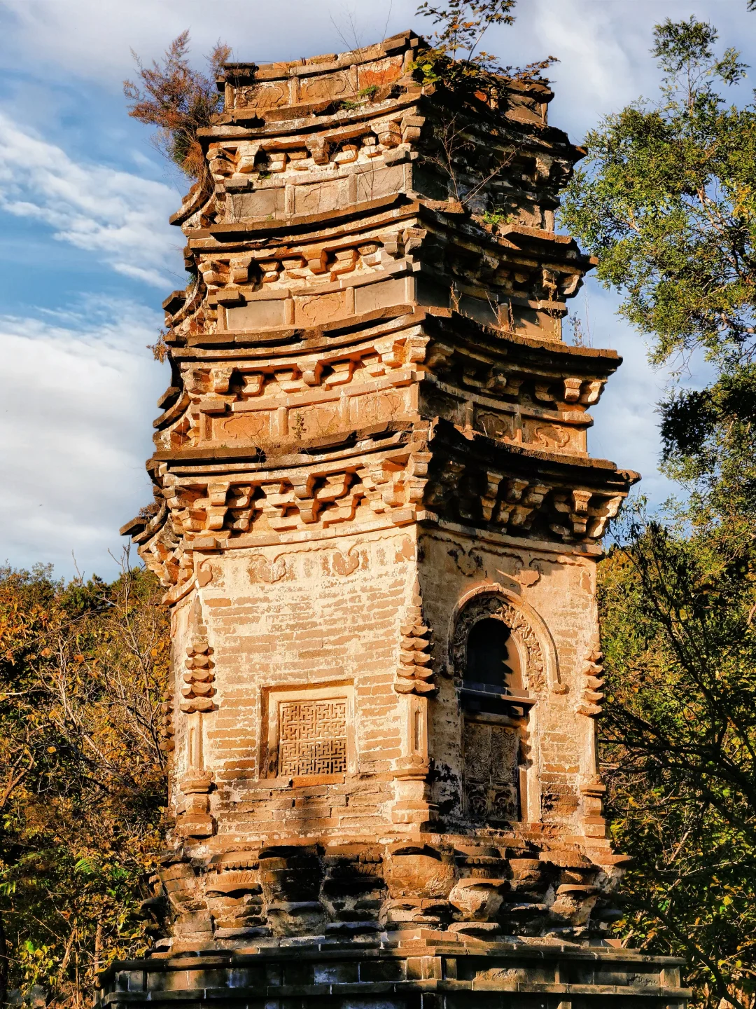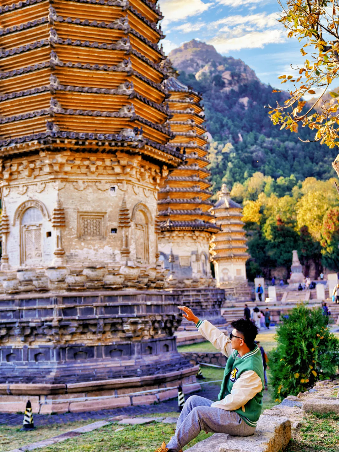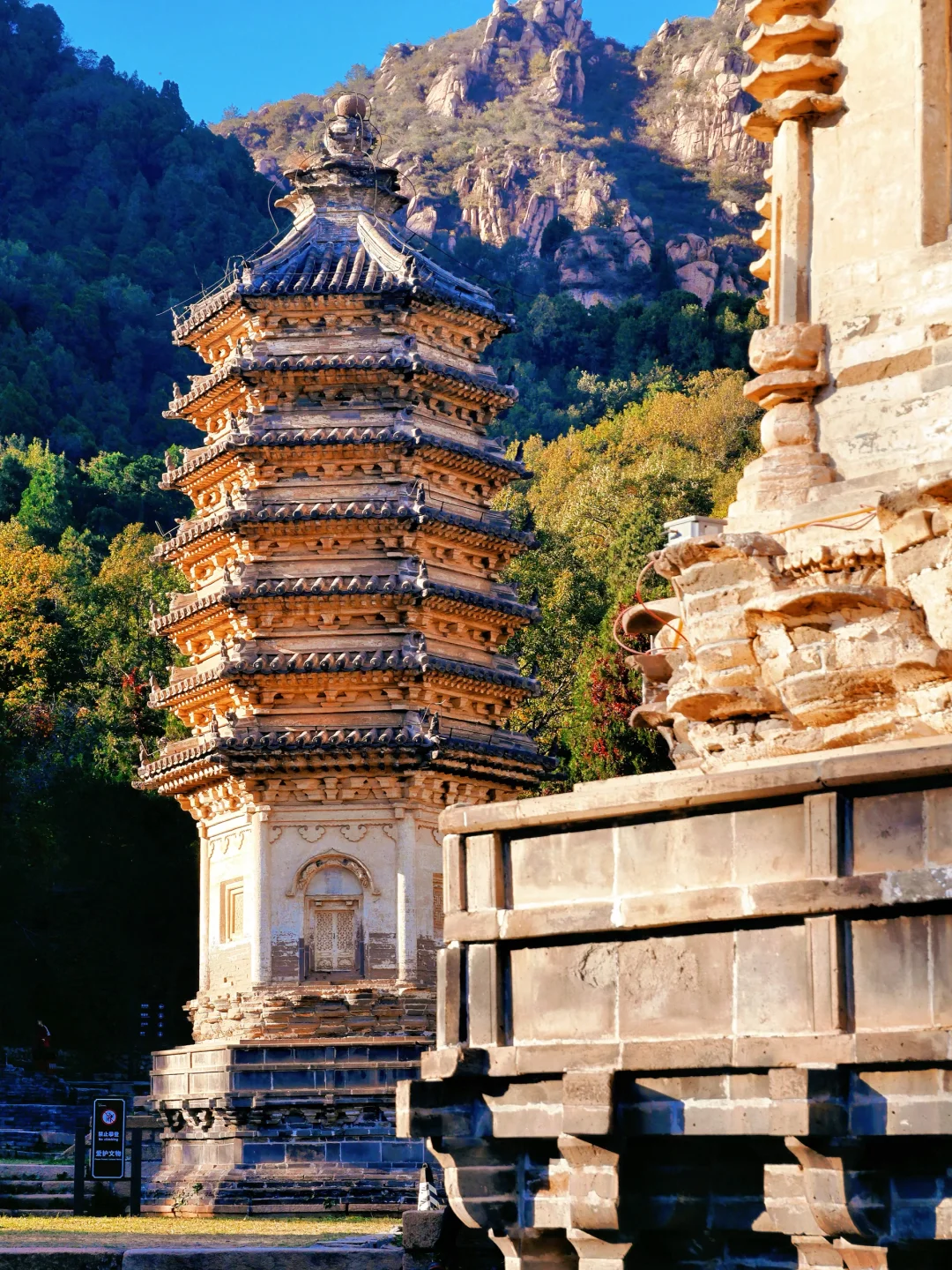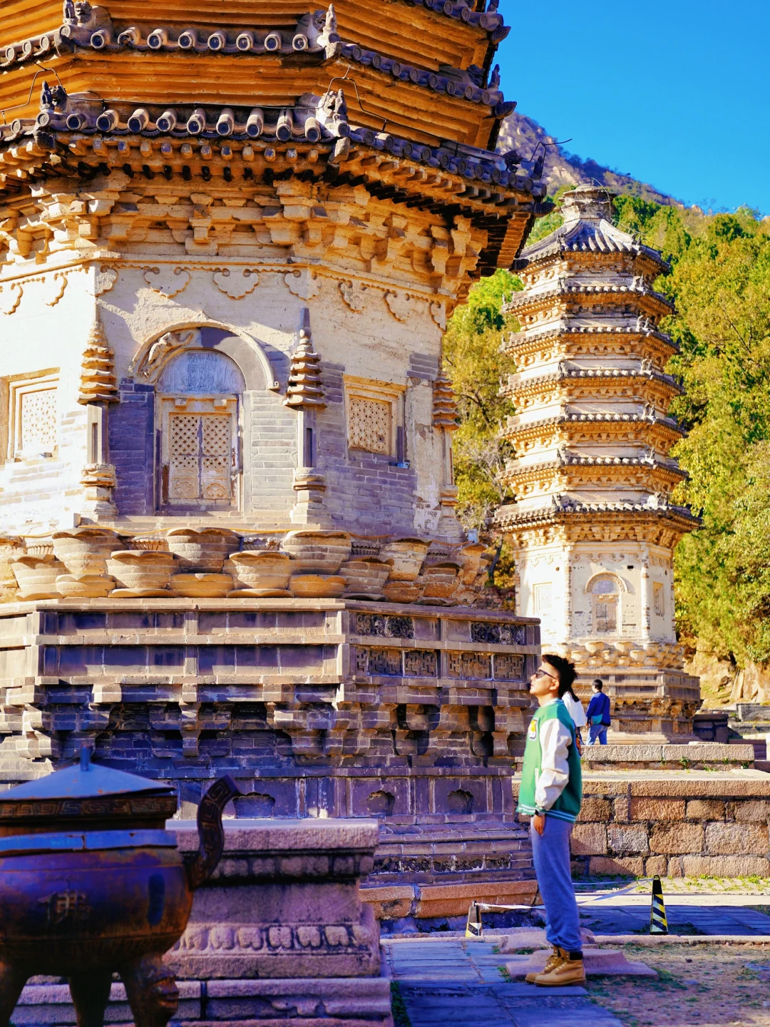 3️⃣每到秋季10月底-11月初,金黄的银杏与古塔相映,赏秋好去处
