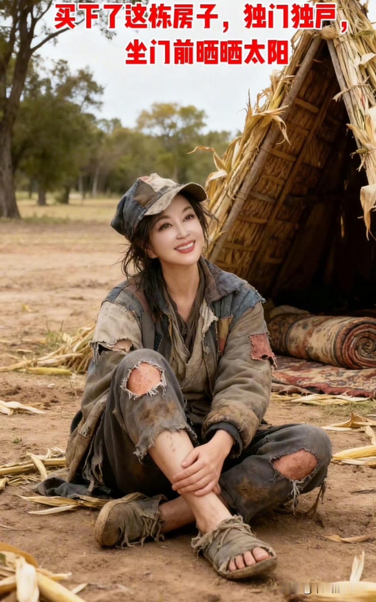 刘晓庆还是太超前了,她都开始用AI制作图片了,难怪她是内娱的常青树。 11月7日,刘晓庆发文说:“幸福就是这么简单。” 刘晓庆还发了两张用AI制作的图片,图中的她穿得破破烂烂,身后有一个简陋的庇护所,这是告诉我们要知足常乐吗? 她参与录制《一路繁花2 》正在热播,庆奶在这一季开心多了,其他人都很尊重她,还让她大口吃肉。 大家觉得刘晓庆喜欢哪一季《一路繁花》呢?