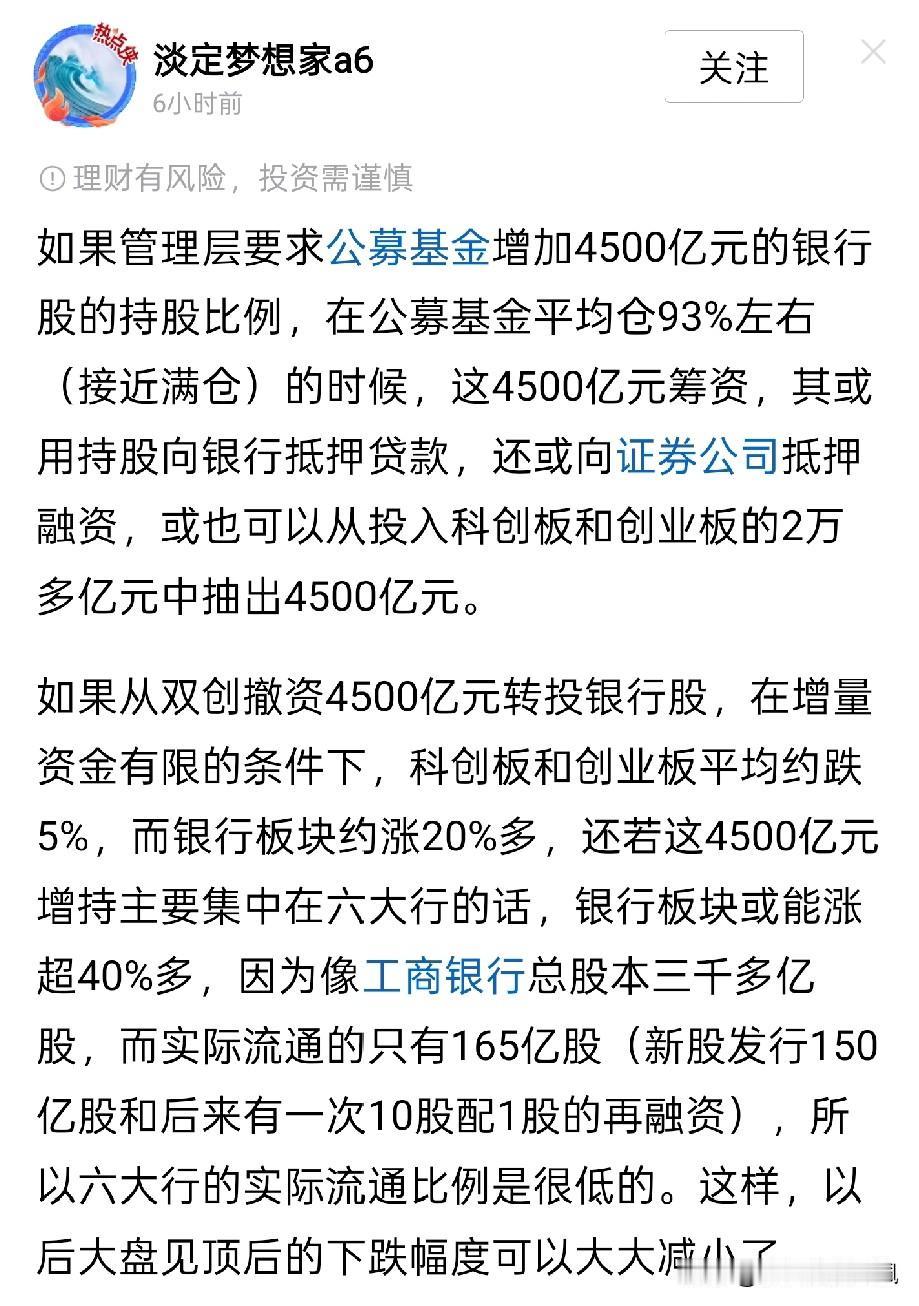 继续谈谈监管有没有可能这样要求公募,去买4,500亿的银行股 恰逢基金三季报发布,根据三季报的数据,结合监管文件要求,我们统计了可能迎来基准调整的存量行业主题基金和微盘基金。发现TMT基金未来可能迎来基准调整的数目最多,为227只, 金融地产基金最少,为13只,微盘基金为9只。 理解力强的朋友已经看懂了金融地产基金的风格漂移实际上是最少的,一共也就13只出现这样的情况,那么要整改也就只有这13只会整改,而且里面还有地产类的基金,金融的基金也不都是买银行。 所以需要把银行持仓比例往上调的基金数量可谓是少之又少!