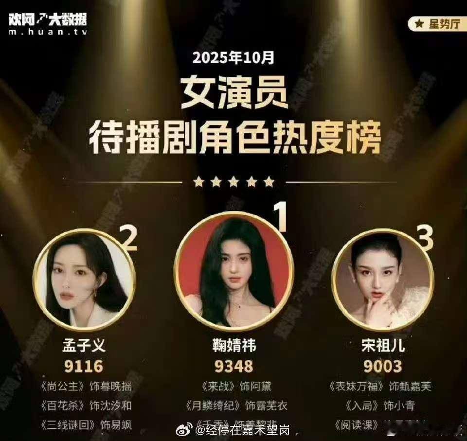 女演员待播剧角色热度榜top3鞠婧祎女演员待播剧角色热度榜top1女演员待播剧角色热度榜top3,不错,行行行 ​​​