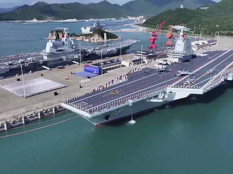 大家看它的雄姿:平直通长的飞行甲板,配置了先进的电磁弹射和阻拦装置,满载排水量高达8万余吨。更重要的是,它的电磁弹射技术处于世界先进水平,这是由中国完全自主创新掌握的!不仅如此,在今年9月,歼-15T、歼-35和空警-600三型新型舰载机,已经在福建舰上成功完成了首次弹射起飞和着舰训练。这标志着福建舰已经完全具备了电磁弹射和回收能力,这是形成战斗力的关键一步,意义非凡!福建舰的加入,为人民海军的转型建设注入了强大的动能。近年来,以航母编队为核心,我们的海军常态化挺进远海,开展实战化练兵,带动空中、水面、水下各类兵力一体训练,频次越来越高,范围越来越广,已经形成了“常态战备+体系练兵”的远海新模式。还记得今年6月,辽宁舰、山东舰编队驰骋大洋,展开了一场规模空前的“硬碰硬”较量,创下了多项纪录。而就在前不久,福建舰首次通过台湾海峡,赴南海开展科研试验和训练,展现了中国海军稳步向前、自信开放的姿态。 从辽宁舰到山东舰,再到今天的福建舰,每一艘航母的入列,都是我们国家综合国力、科技水平和民族凝聚力的生动体现。福建舰的正式入列,是献给共和国、献给人民海军的又一份厚礼!让我们共同庆祝这一伟大时刻,为我们强大的祖国,为我们英雄的人民海军,送上最热烈的祝贺和最真挚的祝福!迈向深蓝,向海图强,未来可期!感谢你的收看。这里是是孺子牛观察室。我们下期见!