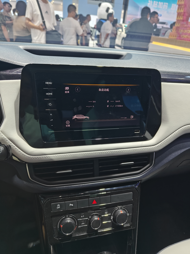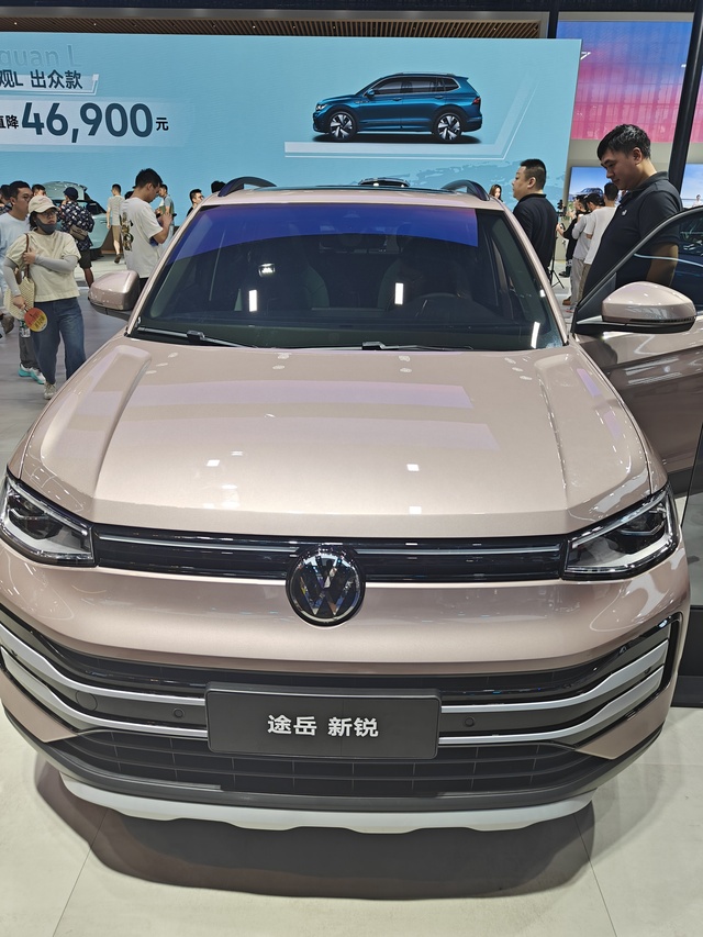 新款大众途岳新锐,值得人手吗? 一、个人感觉: 展台前端是新上市的大众-途岳新锐,展示的是镀铬版本,整个造型不错挺好看的,前脸线条不错。车内延续了大众家族风格,灯光开启按键、方向盘功能控制传统按键、车机安装在仪表台上,空调区传统按键和调节,这些都是可以接受,介意就是外观稍微优化,更加符合年轻人喜欢。还有就是挡把是手动式模样,点烟器口没有盖板,后排地板轻微凸起,和后排出风口较小,这些都是可以优化的,在此多少有点减分。 二、乘坐空间: 本人身高1米70,上到后排膝盖到前排为二拳,头到车顶将近两拳,主副驾驶位空间也二拳。后备箱空间挺不错很大,做了开关连动盖板。 三、储物空间: 中控台扶手箱空间很小,还有水杯槽做的很一般,感觉就两块间隔片隔开就好了。车内储物空间很一般,可以优化下。 三、车机性能: 车机尺寸不是很大,数据传输口还在车机上,感觉用车过程用碰到风险。车机操作流畅,反应也灵敏,当然功能设备控制少,这点个人是不介意的,在车机智能控制全车设备与不控制全车设备,个人倾向于后者。