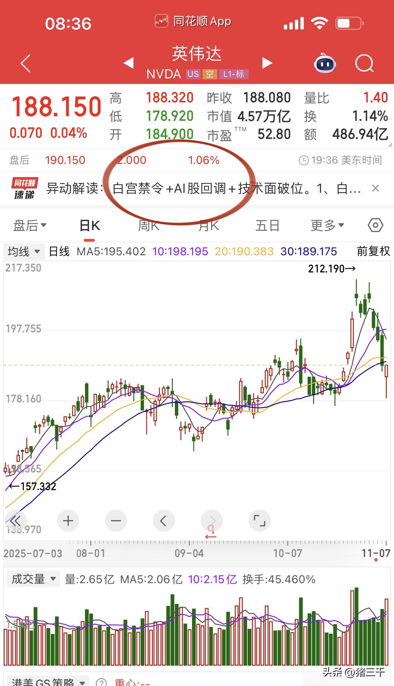 英伟达这一晚上一鱼双吃! 上半夜一路空、下半夜一路多, 4.5万亿美元的盘子场内外庄家都喜咪了, 怎么越来越不对味有点香港马场的感觉了! 不过该说不说这打地基的探水竿是真漂亮, Ai的泡沫顶峰2026Q1-Q2才会见到, 像这种级别的大牛市, 不管是美股还是A股, 头部公司高位筑顶3-5个月都是常见的, 筑顶区间20-30%来回反复震荡。 这在过去几轮牛市中都有过验证! 但小公司就波动大了, 因为小公司容易冲过来也容易跌过来, 来回切换都迅雷不及掩耳, 比如:液冷申菱环境对比英维克, 申菱环境都跌入技术性熊市了、英维克纹丝不动 再比如:贵州茅台和五粮液 熊市“抗跌”是检验行业真假龙头唯一标准!