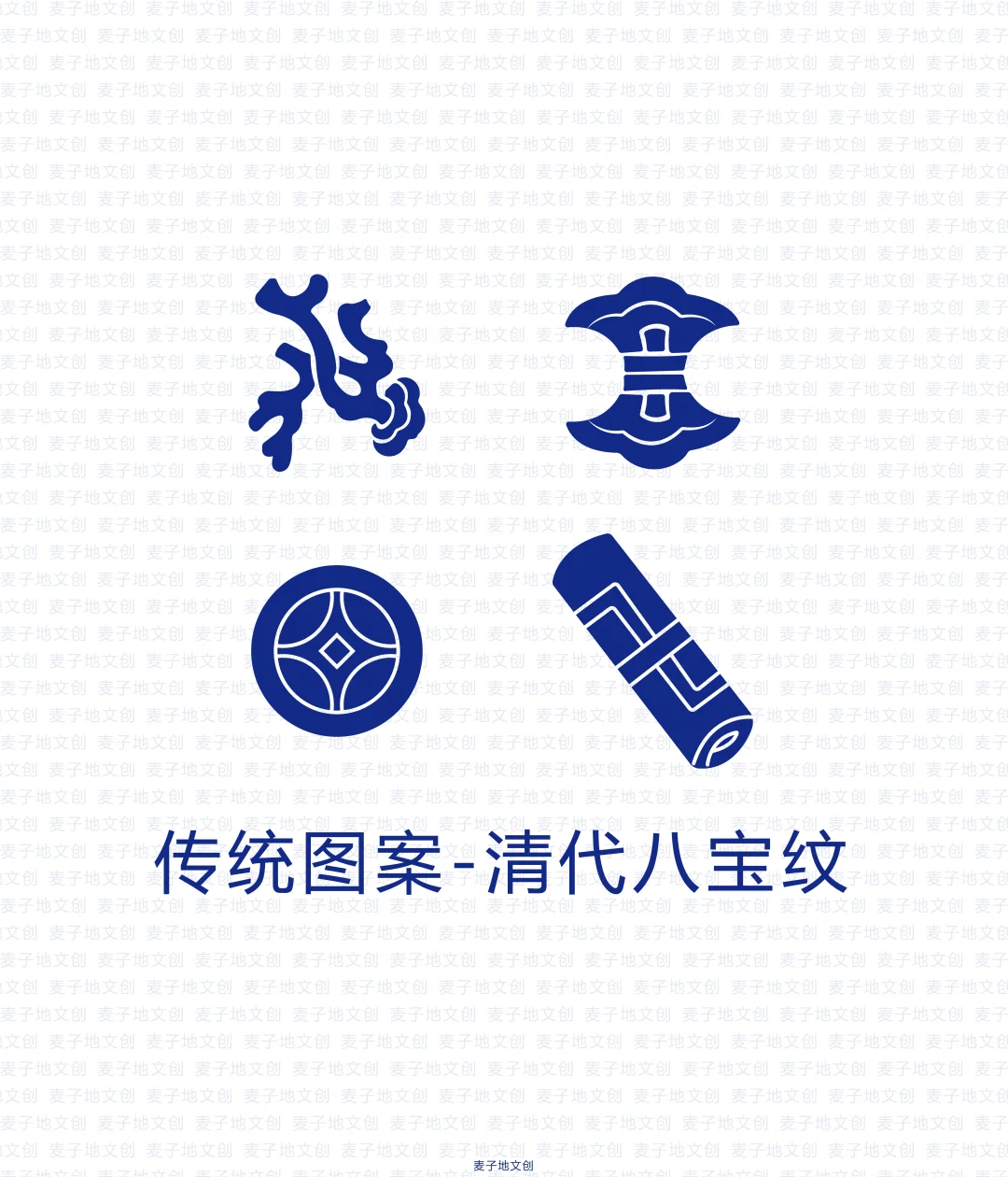 [四R]清代雍正:突破传统“辅助纹样”定位,将杂宝纹独立作为主纹装饰(如雍正仿成化青花八宝纹高足杯);
