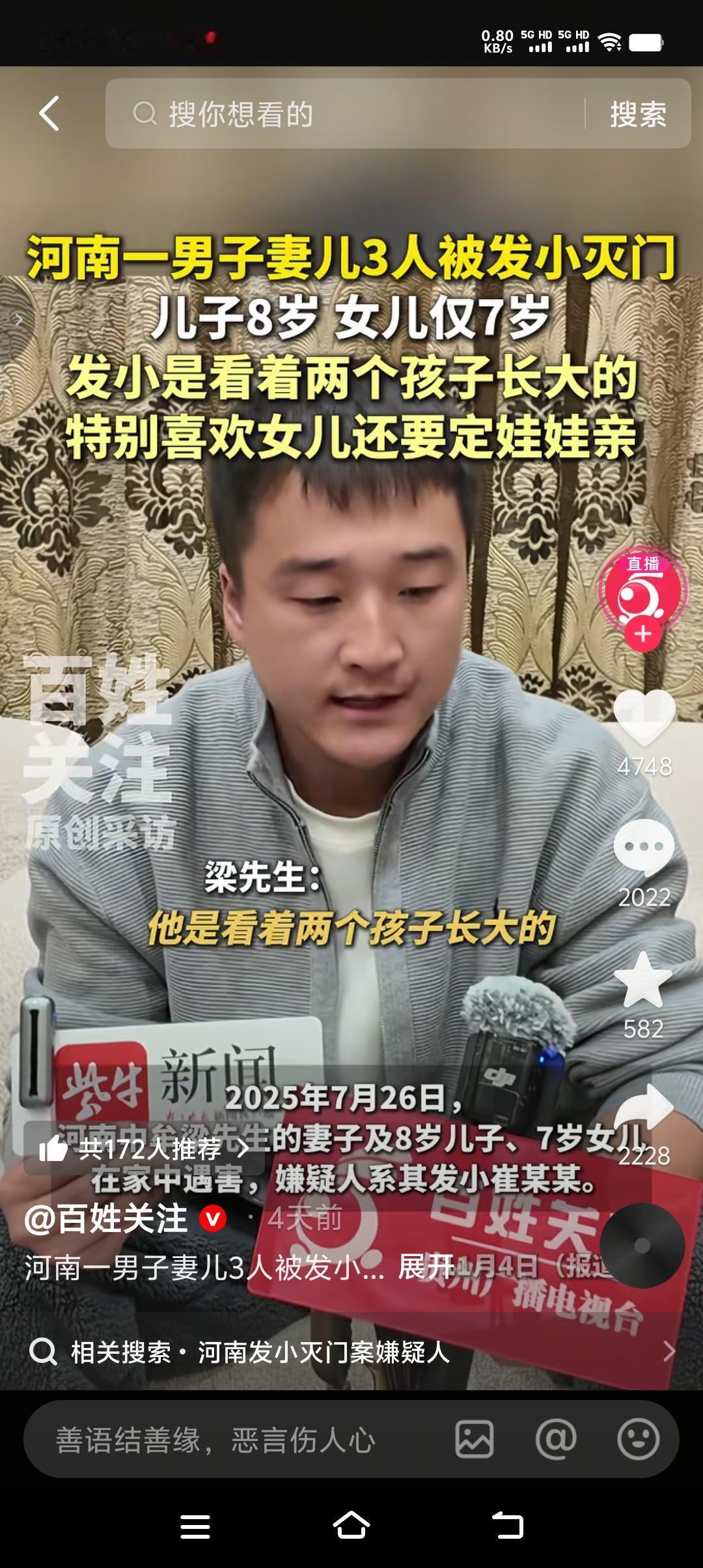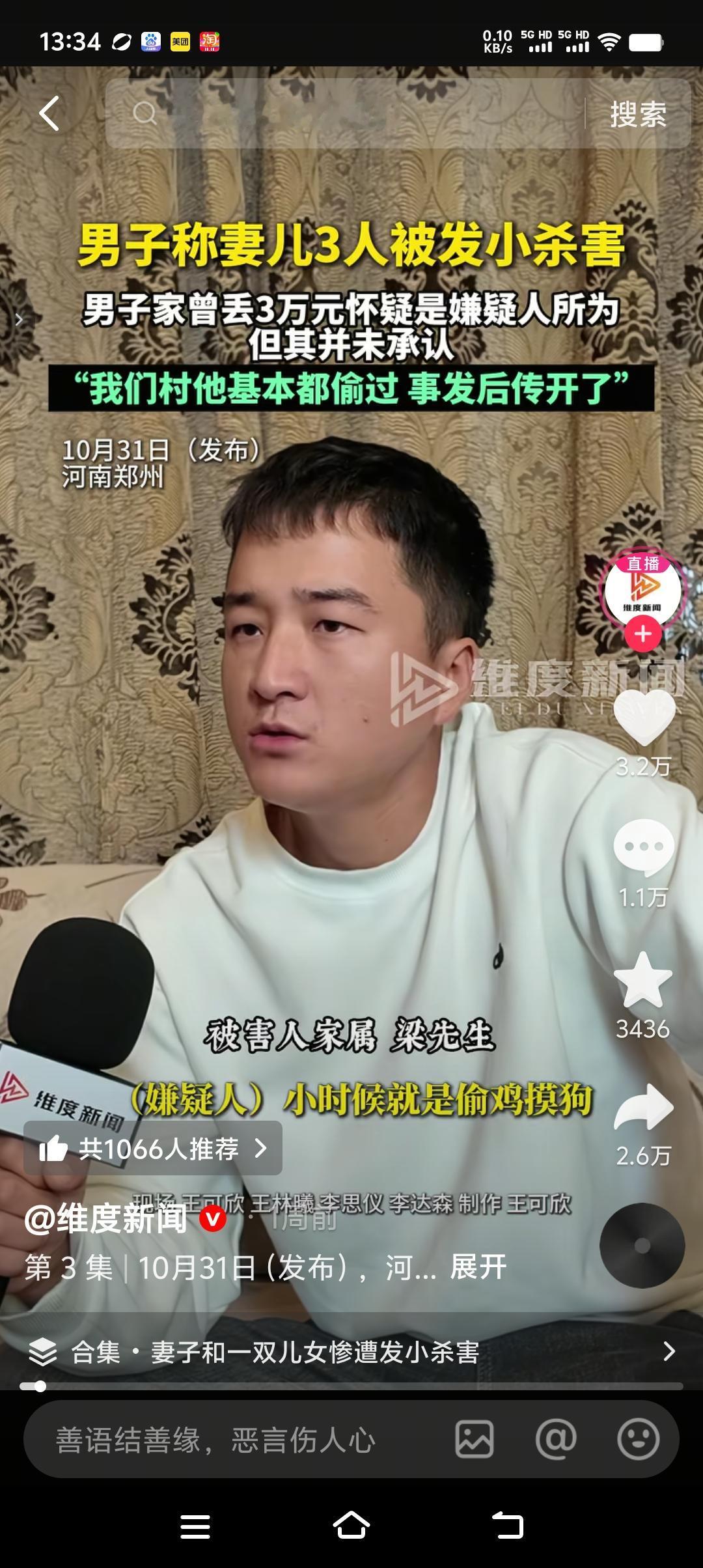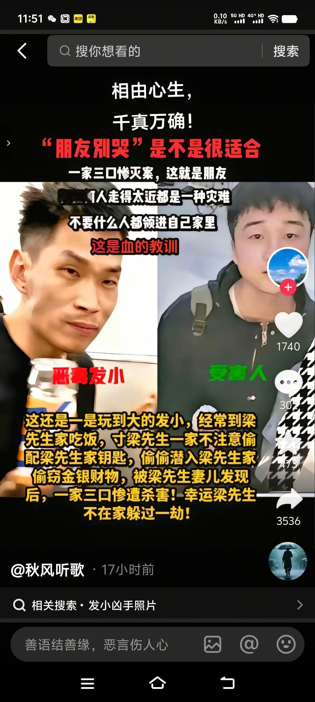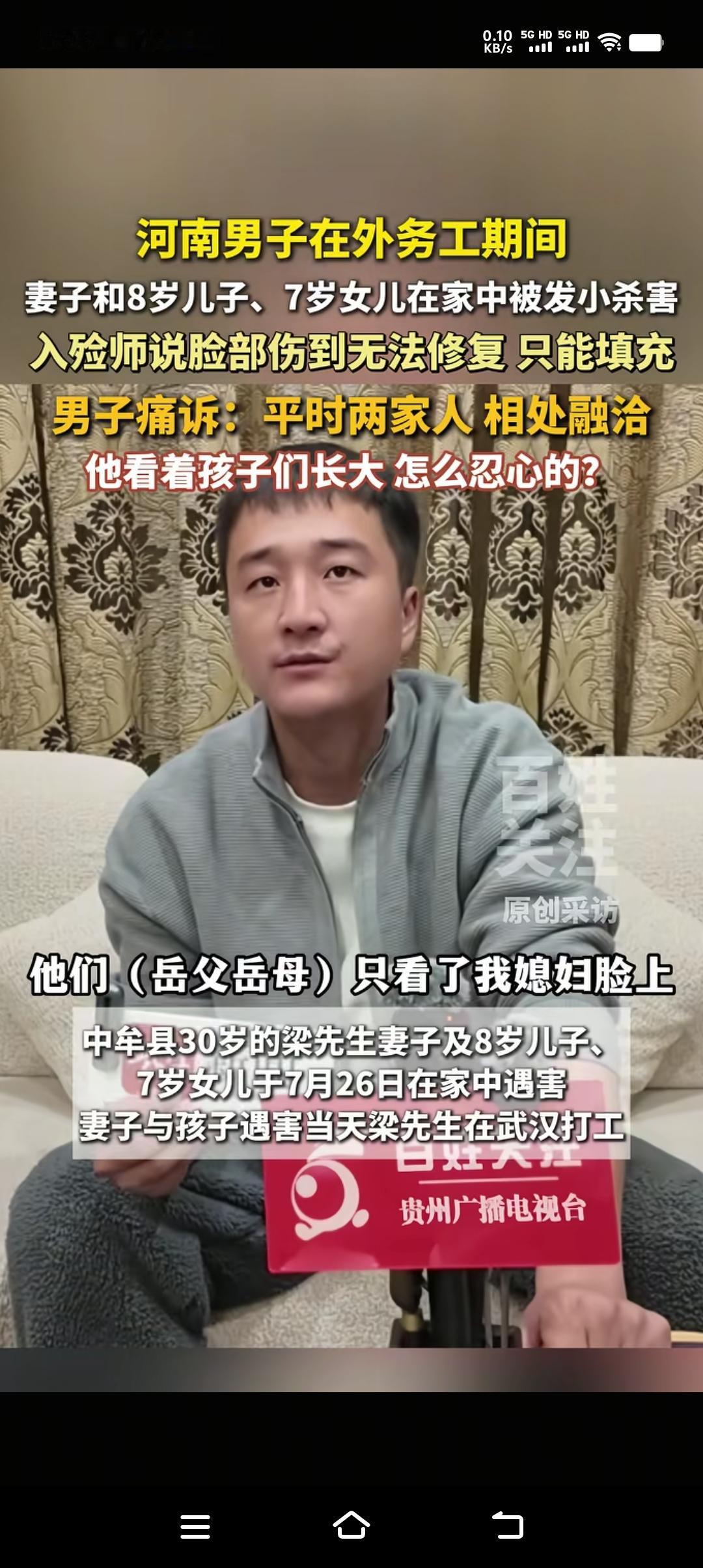 地狱空荡荡,恶魔在人间。河南的梁先生做梦也不会想到,昔日形影不离的发小竟然是隐藏在自己身边的恶魔。一家三口惨遭灭门,手段残忍,只为图财。 经常借钱,经常领回家吃饭,北漂5年带着他。认识20多年,发小是看着两孩子长大的,特别喜欢女儿,还要定娃娃亲,典型的现实版农夫与蛇的故事。 嫌疑人小时候就经常干偷鸡摸狗的勾当,曾经还偷过粱先生家三万块钱,为此梁先生还打过他。明知发小品行不好,长大了还要走的如此亲近,最终引狼入室。 害人之心不可有,防人之心不可无。所以说这个世上害你的人,往往是你身边最亲近的人。因为越是熟人,越见不得你过的比他好。