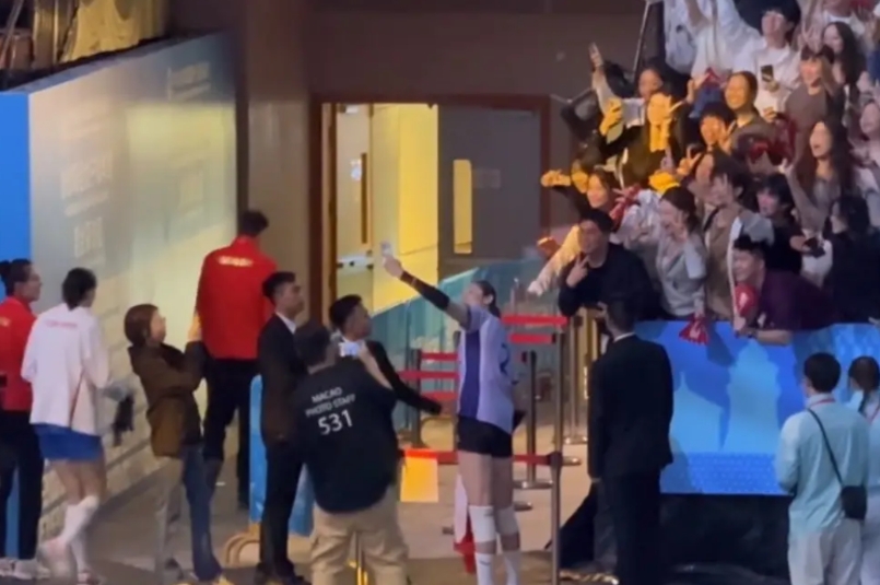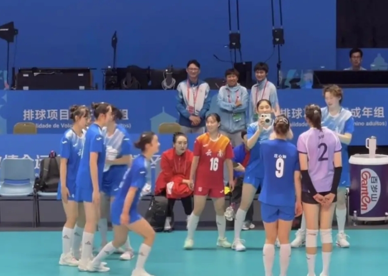 好感动的一幕啊!这就是朱婷的影响力啊,大型追星现场!赛后朱婷正躺在地上放松休息,云南女排队员们过来找朱婷合影,朱婷二话不说,就从地上爬起来,云南队队员排着队一个个来拍照,太可爱了! 有个小队员拿到了朱婷的签名,蹦蹦跳跳地跑出了场地,毕竟能跟朱婷同场竞技的机会不多,别说合影了,难得啊! 网友:全运会著名打卡景点,最后离场时,朱婷还拿着球迷们的手机跟球迷合影了!