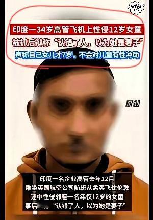 印度的性侵活动搞出了新高度,因为这是在飞机上啊!一个34岁的高管,性侵了一个12