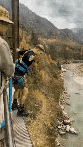 这蹦极直接变“跳河”,真要吓死人!男子来悬崖蹦极,装备穿戴得挺利索,一脸淡定往下跳,看着老勇敢了。 结果刚跳下去没几秒,人直接沉到河里浮着不动了,看着就凶多吉少!后来才发现,居然是安全绳太长了!这哪是蹦极啊,纯属没保护措施的自由落体,跟自杀没区别! 工作人员也太离谱了,这么关键的细节都能疏忽?安全绳长度都不核对一下吗? 真的,细节真能要命!不管干啥,尤其是这种危险项目,一点马虎都来不得。一个小失误,直接把人推向绝境,这教训也太惨痛了!