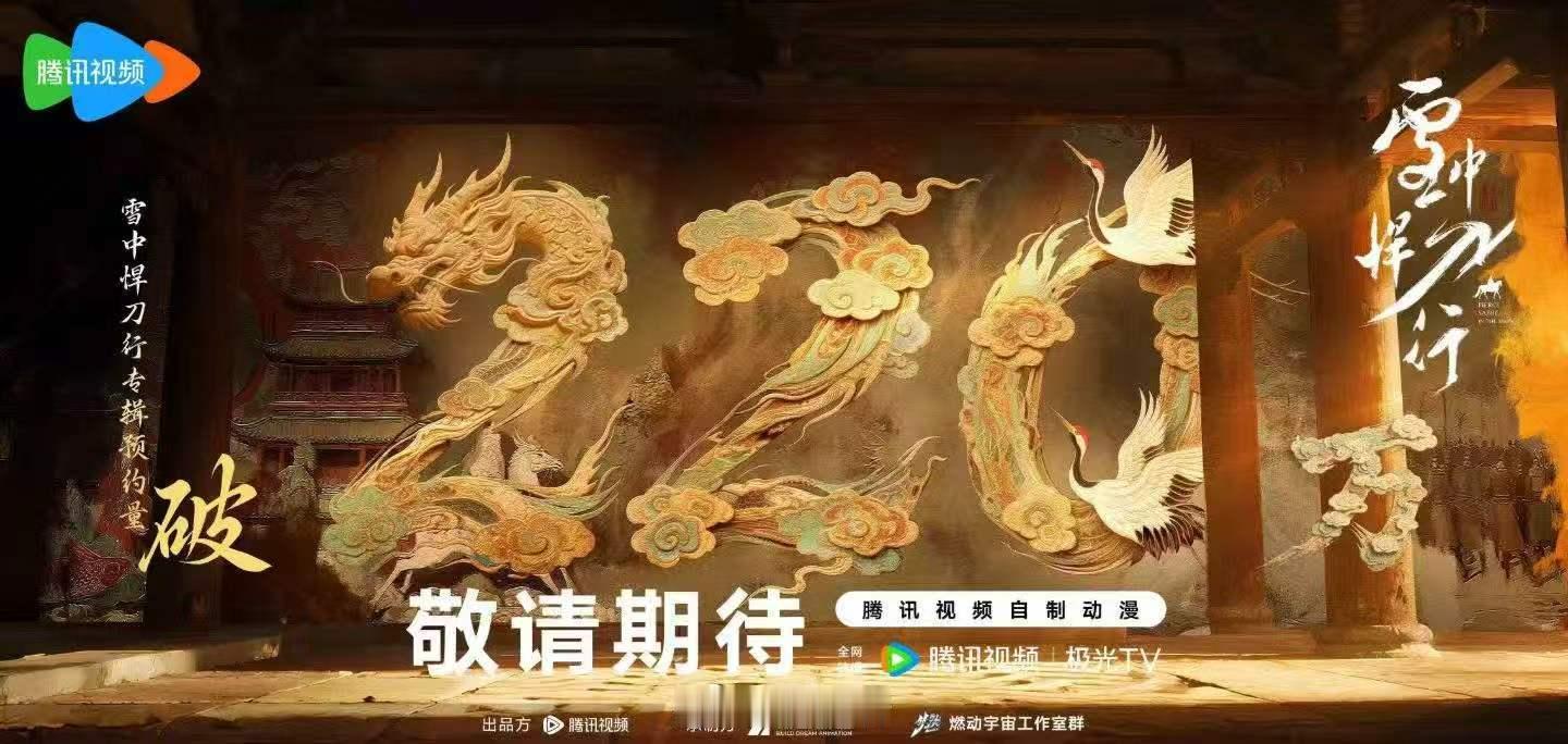 家人们谁懂啊!雪中悍刀行动画预约破220万 这数据也太顶了吧!就等徐凤年拎着刀闯江湖,李淳罡喊出“剑来”的名场面,国风水墨特效看着就带劲,220万网友一起蹲开播,这波绝对不亏!