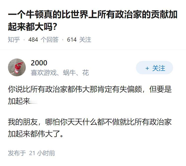 一个牛顿真的比世界上所有政治家的贡献加起来都大吗?