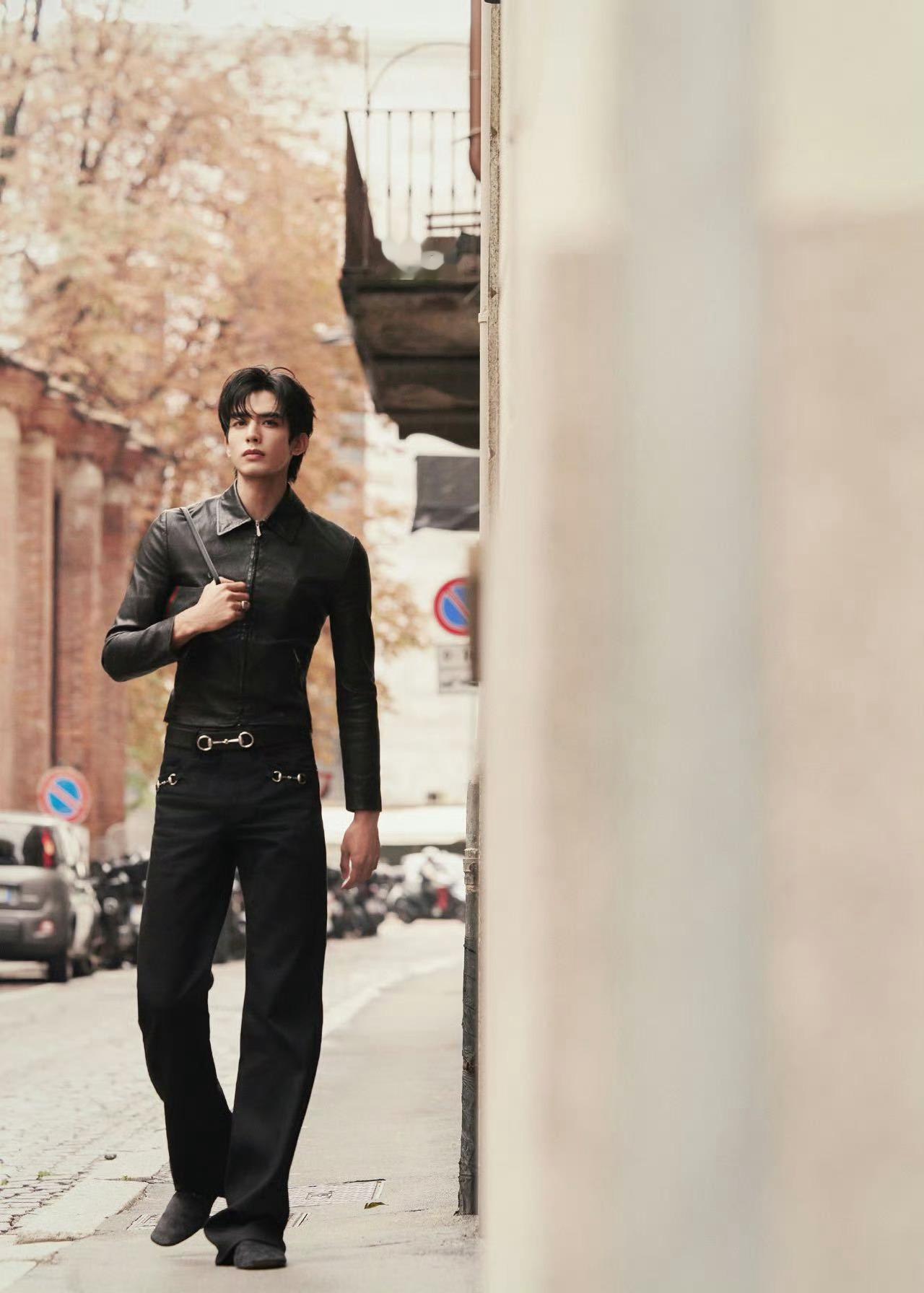 陈哲远 in SAINT LAURENT 2025秋冬 黑色系皮衣
