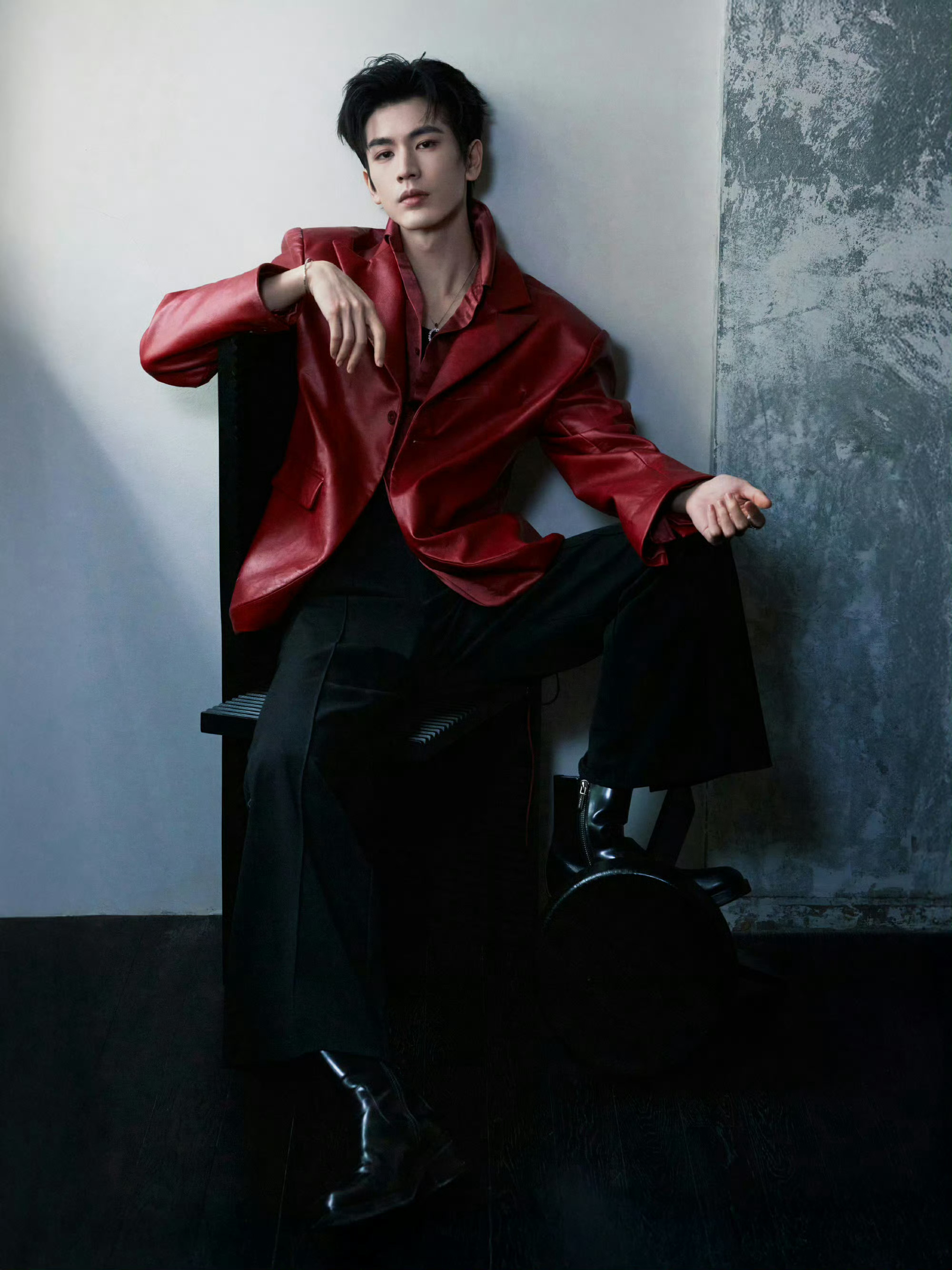 朱一龙 in Acne Studios 2026春夏系列 酒红皮衣